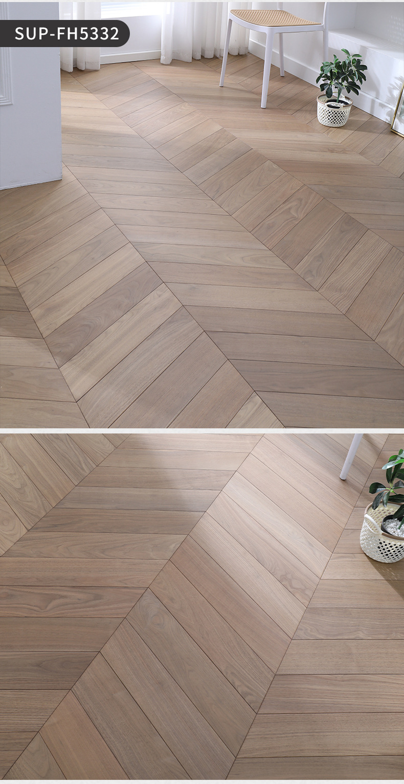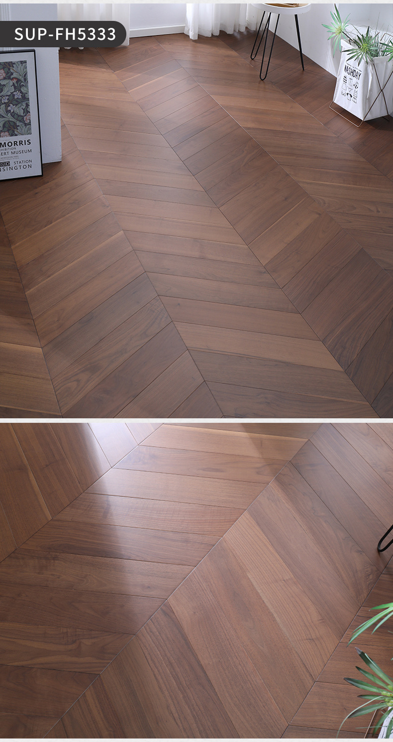 三層構造の無垢フローリング、ヘリンボーン/フィッシュボーン/オーク/ブラックウォールナット、環境に優しいENFグレード、純無垢材