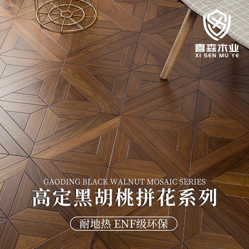 寄木細工無垢材フローリング 純無垢材 特殊形状 床暖房 多層 ブラックウォールナット原木 湖州南浔工場 家庭用