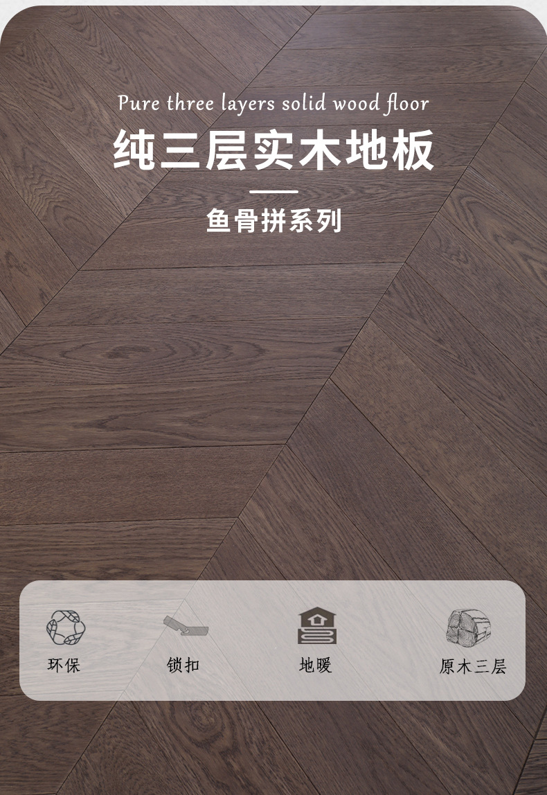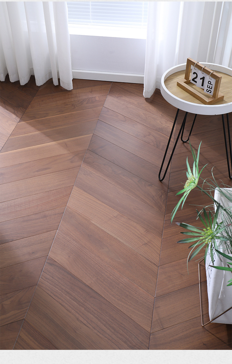 人字拼鱼骨拼多层实木地板纯实木橡木黑胡桃原木南浔工厂地热地暖