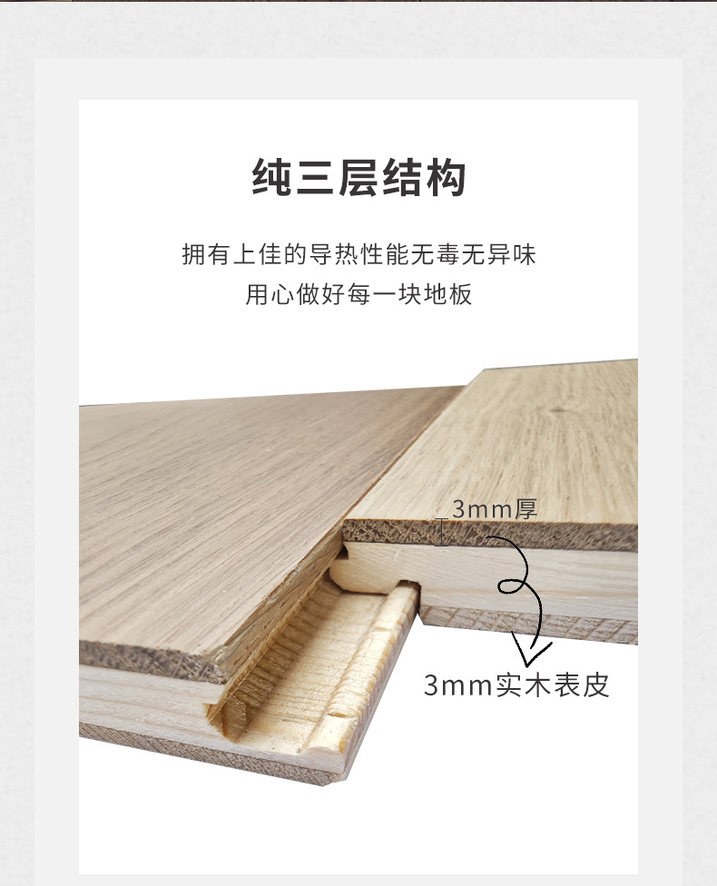 新三層純無垢材フローリング寝室用木製床無垢材床暖房複合湖州室内オーク材家庭用天然