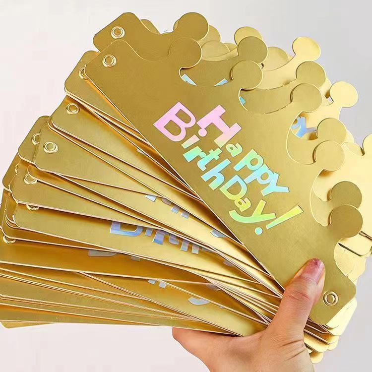 折り畳み誕生日紙帽ばら積独立包装網紅金皇冠慶生祝日服装調節誕生日帽