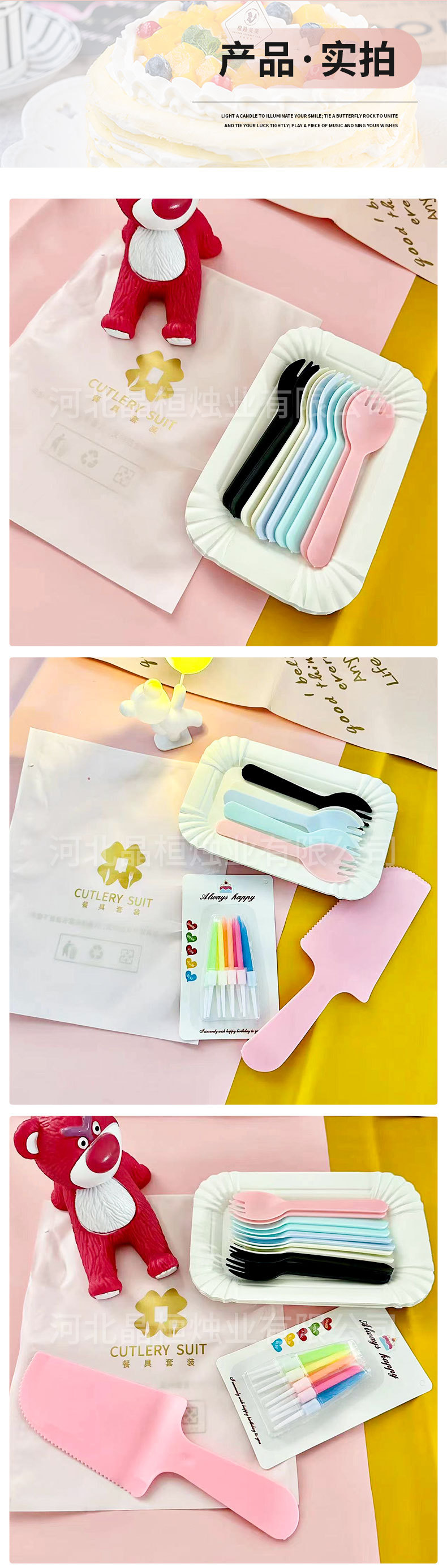 誕生日ケーキ皿フォークセット四合一厚いナイフフォーク皿ろうそく食器セット使い捨てケーキ皿セット