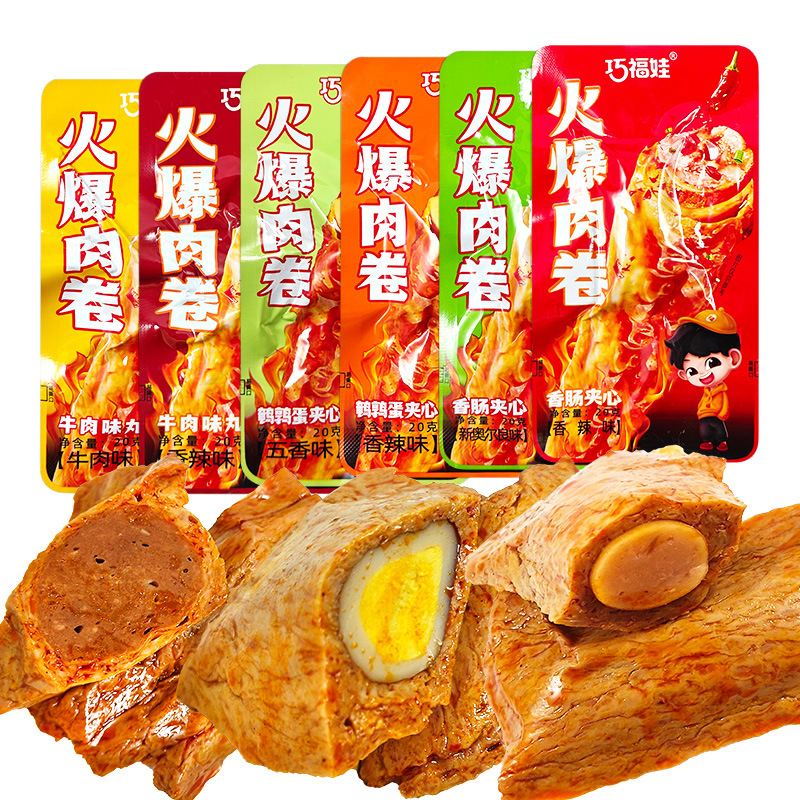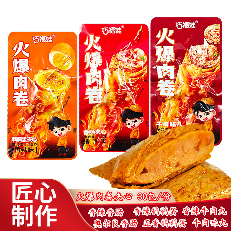 巧福娃の人気肉巻き湖南麻辣熟食香辛素肉ソーセージ牛肉丸うずら卵サンドイッチスナック