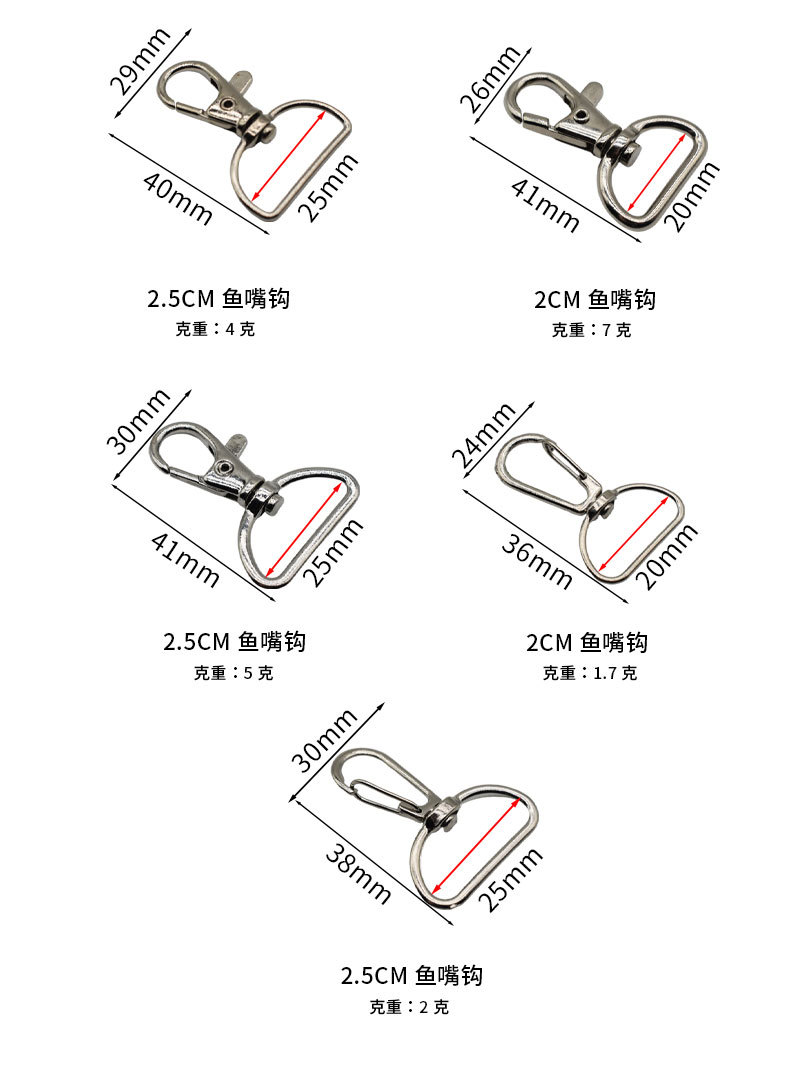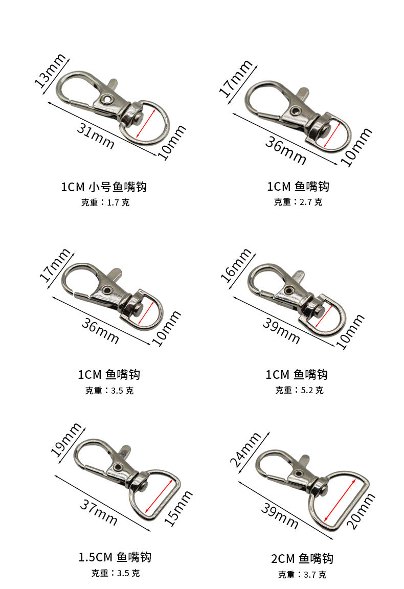 厂家批发箱包五金狗扣金属鱼嘴扣 服饰包包织带弹簧扣 钥匙龙虾扣
