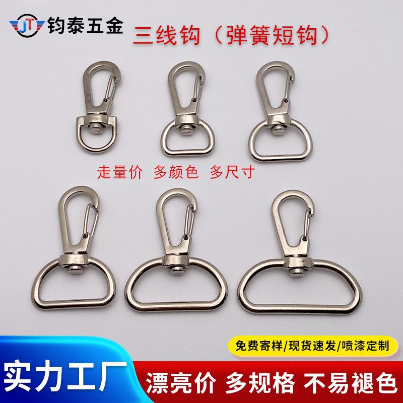 厂家批发五金箱包配件金属弹簧三线钩扣 织带挂扣龙虾钥匙扣狗扣