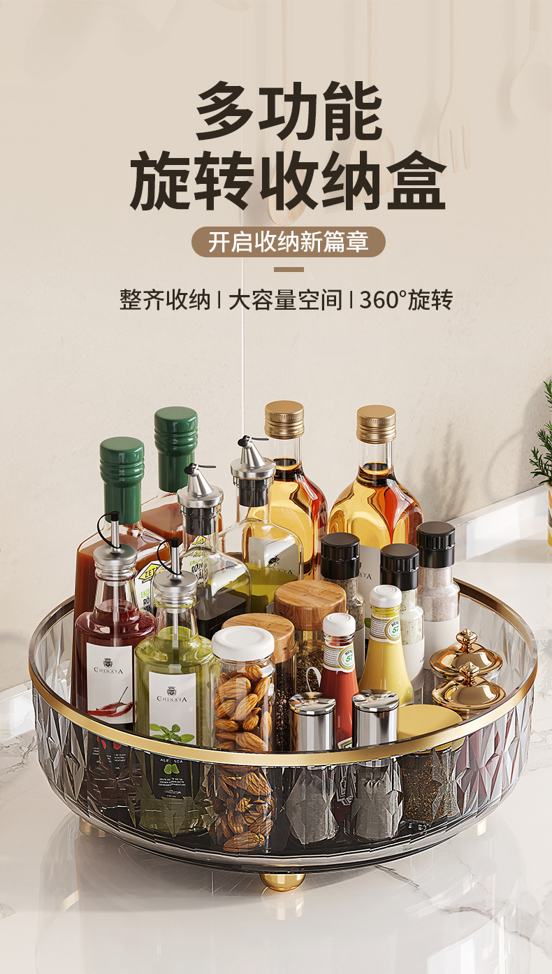新款置物架家用轻奢风厨房大容量可旋转加厚整理收纳调料架批发