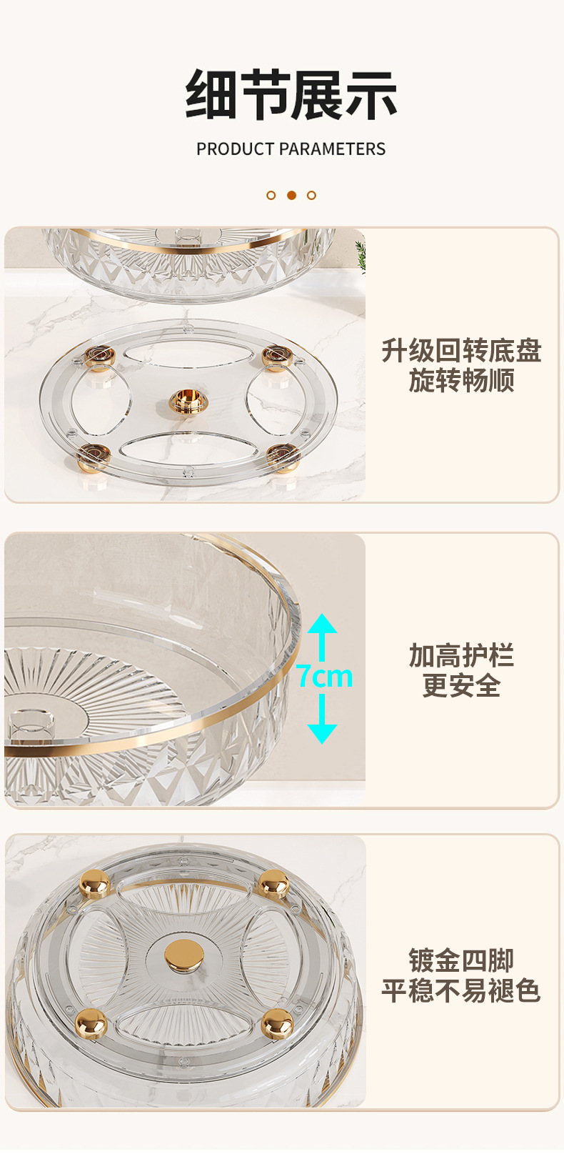 透明フルーツ皿ins軽豪華風金辺ハンマーレンガ石紋pet耐転落大容量キャンディー皿家庭用客間