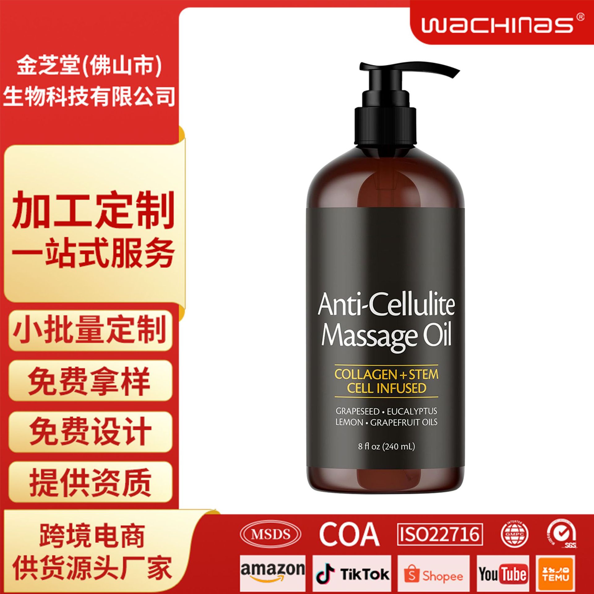 越境で人気の高いボディマッサージオイル、肌に潤いを与えるマッサージオイル、少量注文、無料サンプル、デザイン支援
