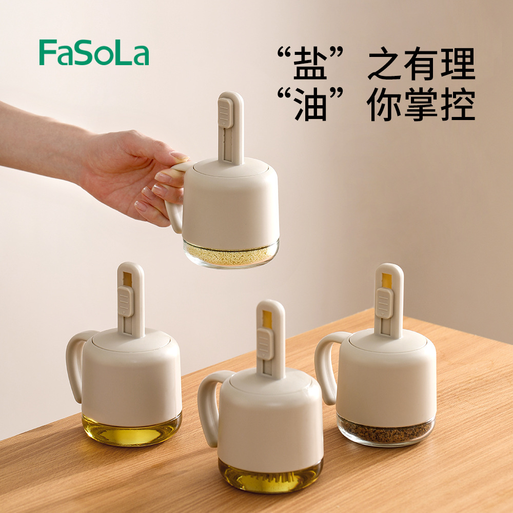 FaSoLa調味料缶スプーン蓋一体調味料箱厨房調味料分注瓶味の素密封塩缶調味料缶