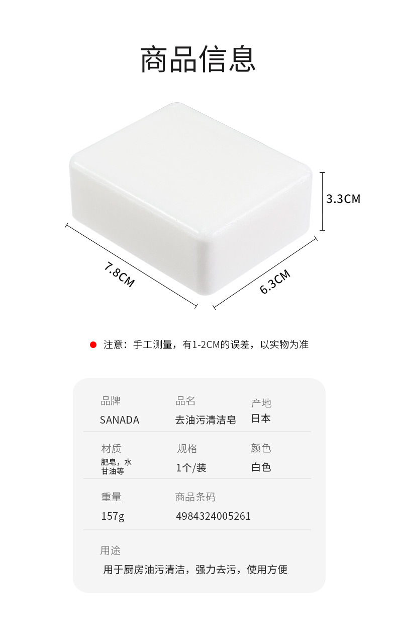 日本輸入sanadaキッチン専用石鹸150g油汚れ石鹸洗浄雑巾生臭洗浄石鹸