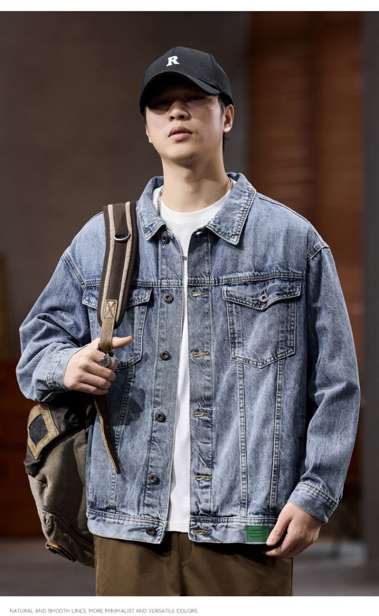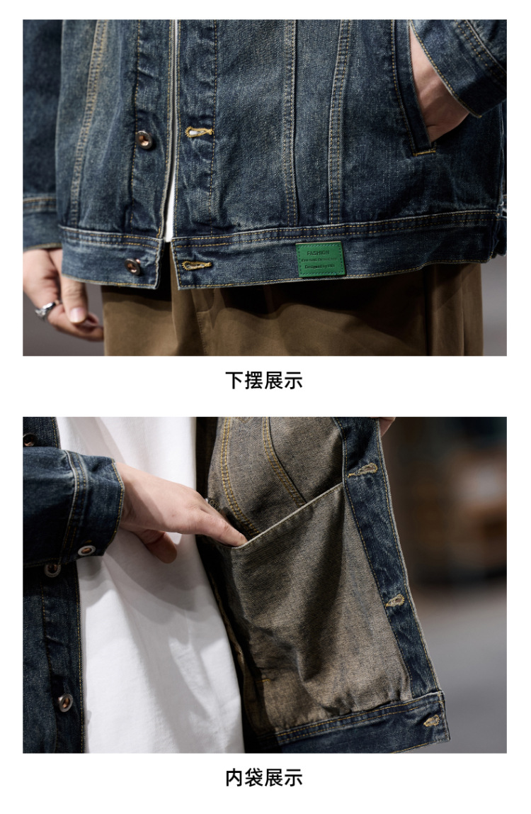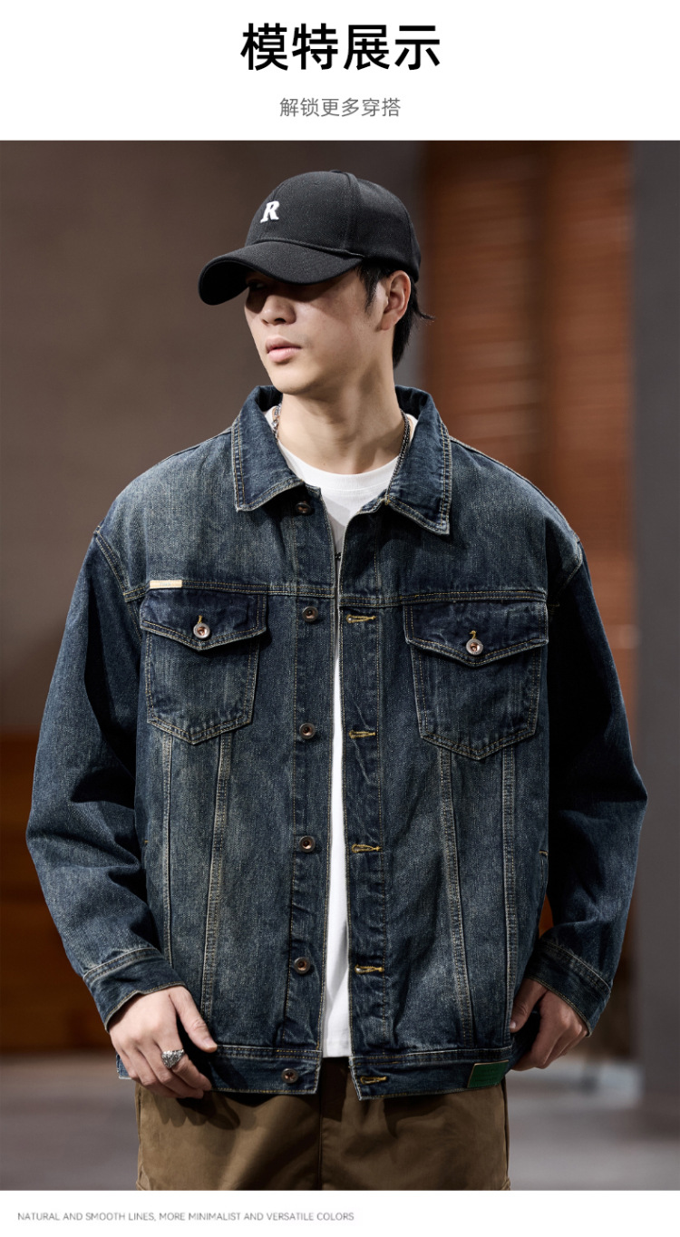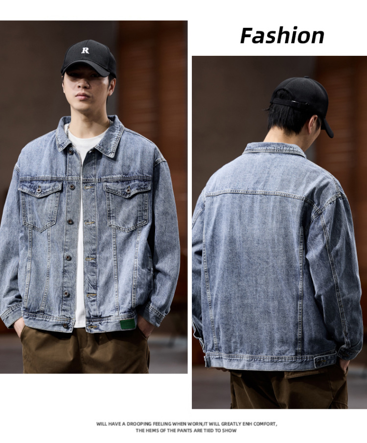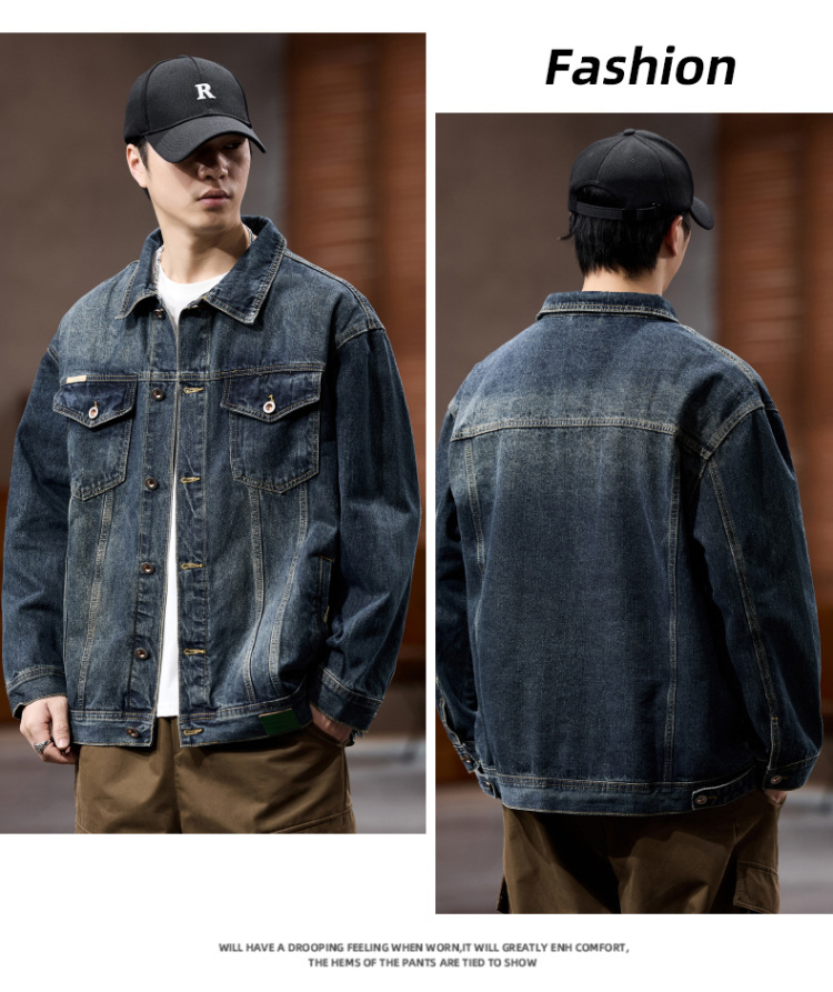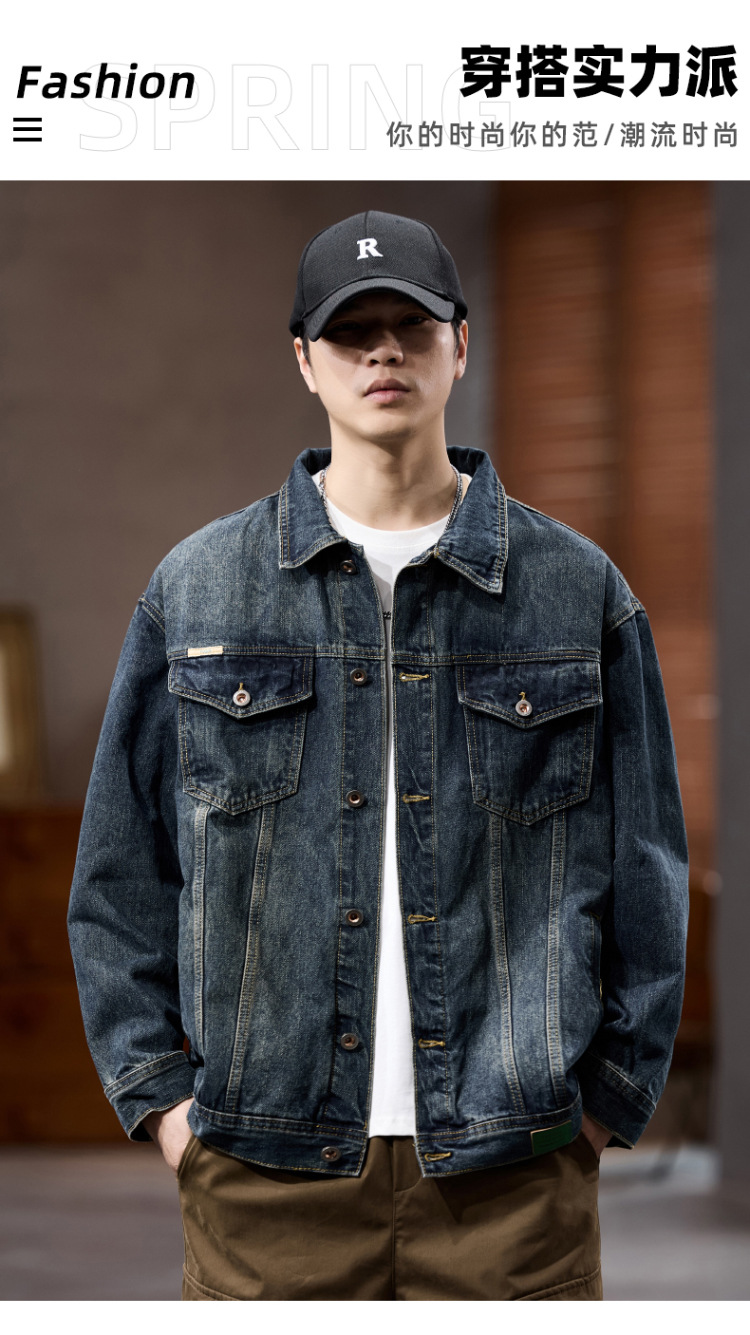 2025 春と秋のデニムジャケットメンズ大きいサイズルーズファットトッププラスファットプラスサイズメンズジャケットトレンディ