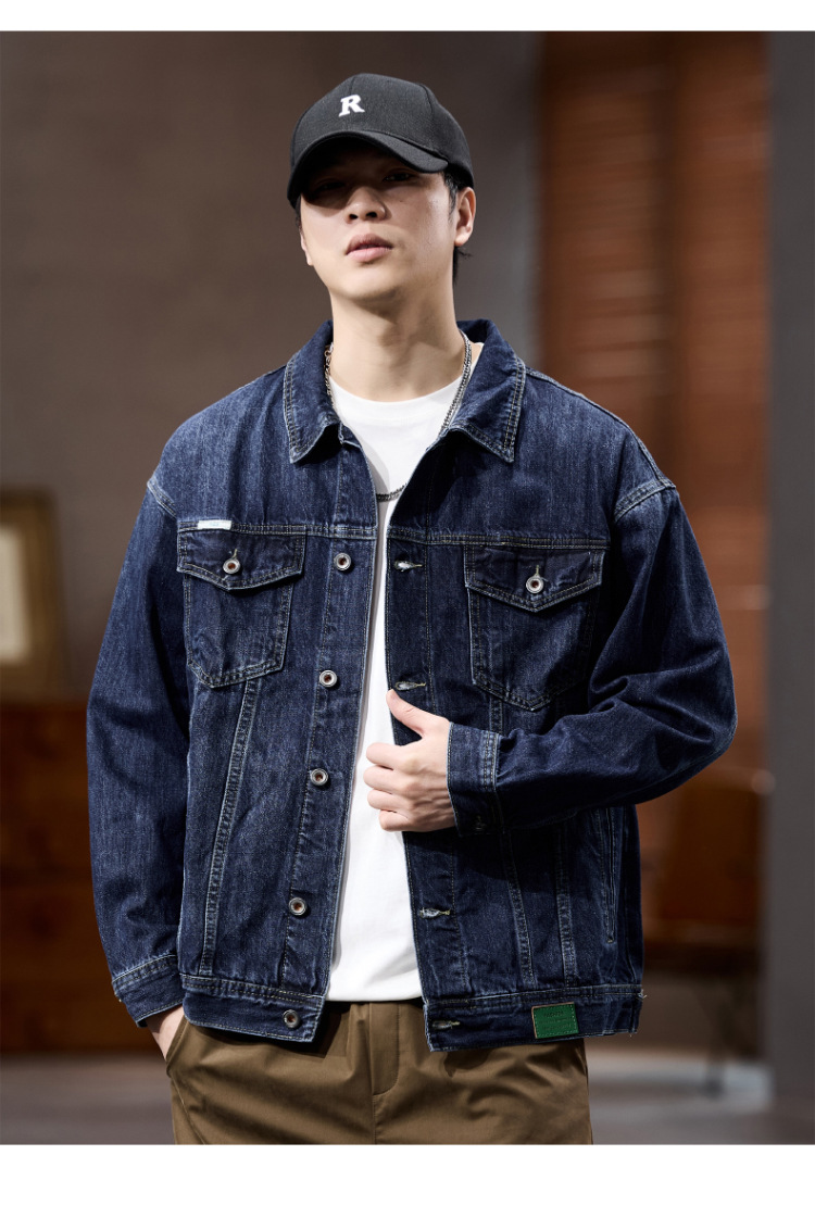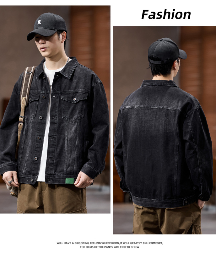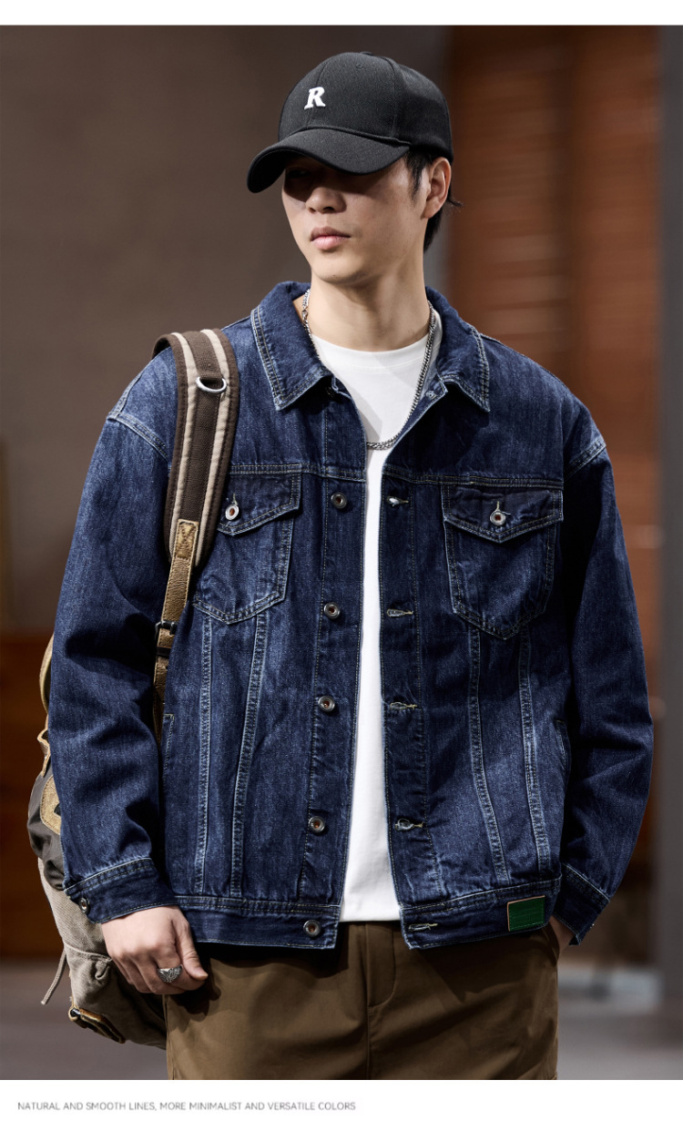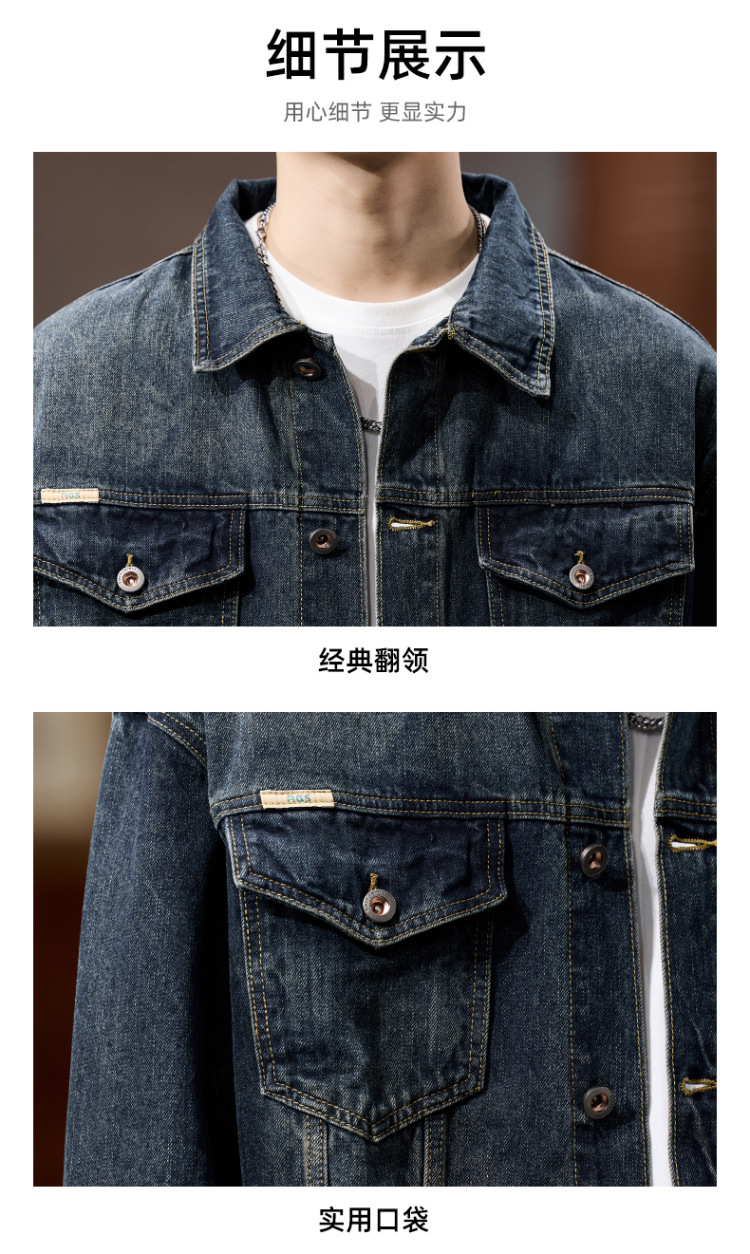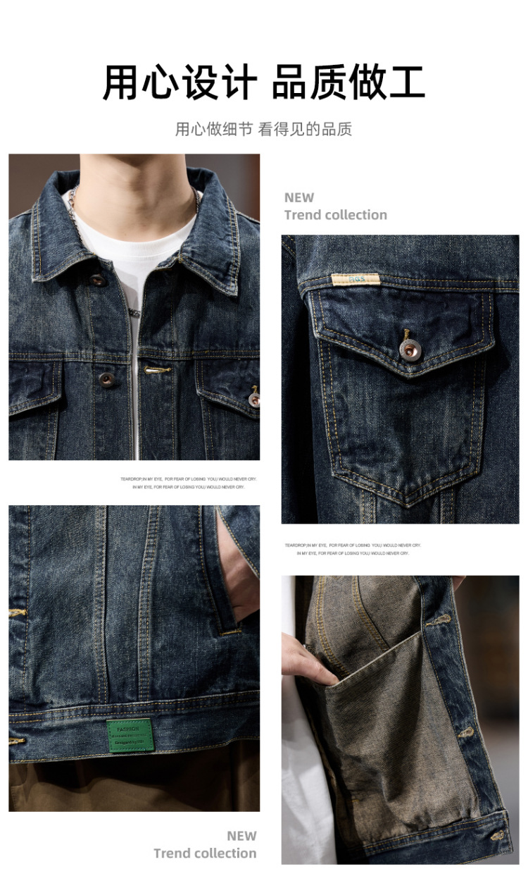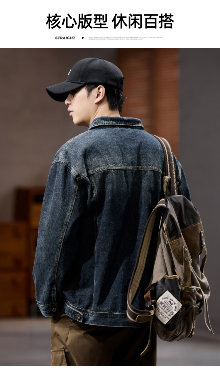 2025 春と秋のデニムジャケットメンズ大きいサイズルーズファットトッププラスファットプラスサイズメンズジャケットトレンディ
