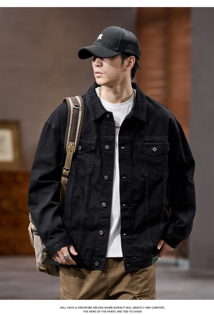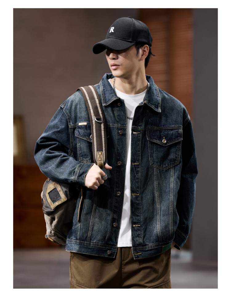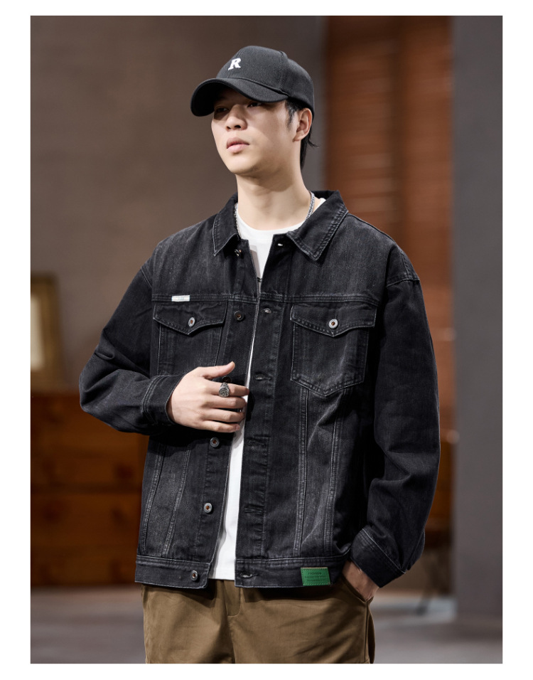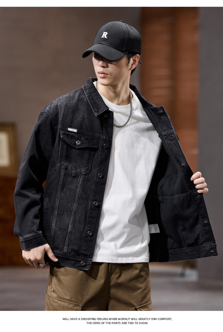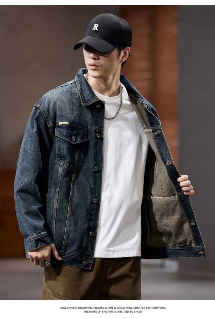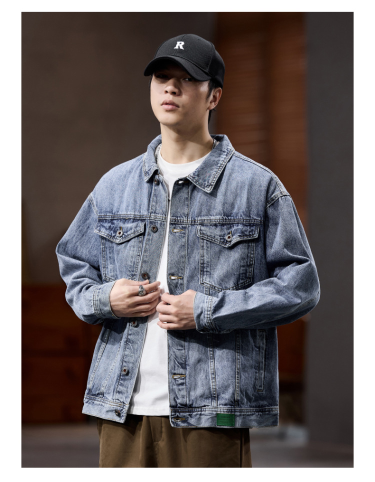 2025 春と秋のデニムジャケットメンズ大きいサイズルーズファットトッププラスファットプラスサイズメンズジャケットトレンディ