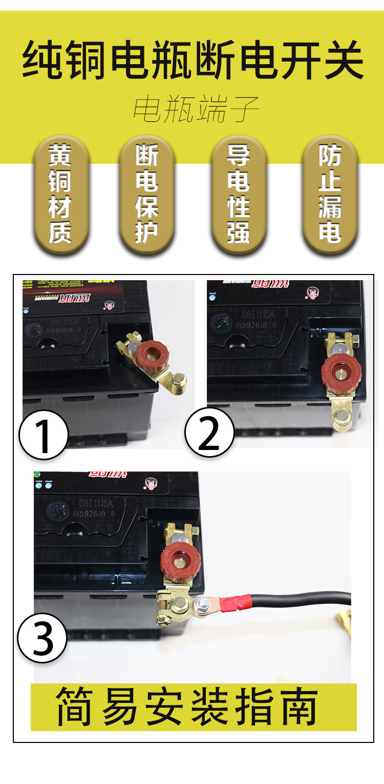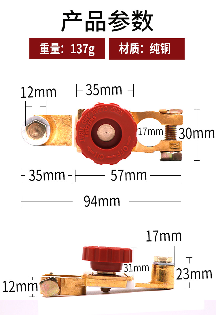 汽车电瓶断电开关纯铜正负极通用防漏闸刀防漏电改装黄铜总闸车子