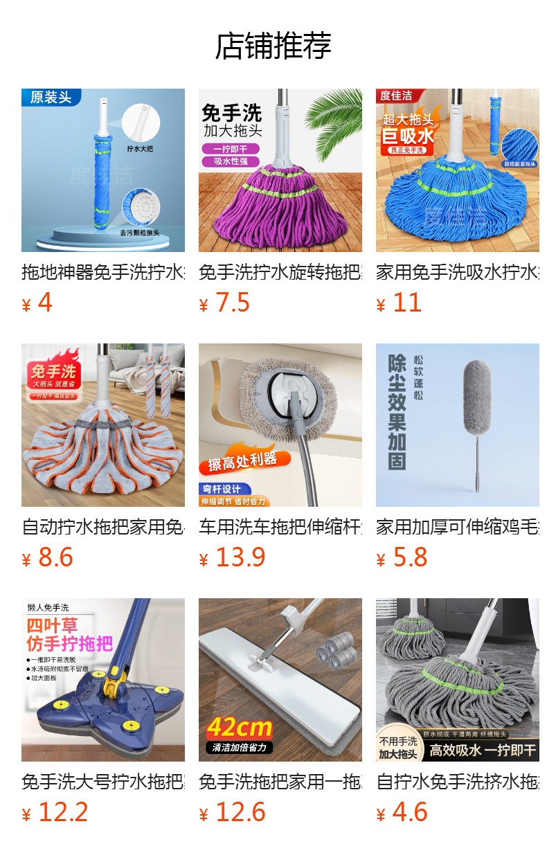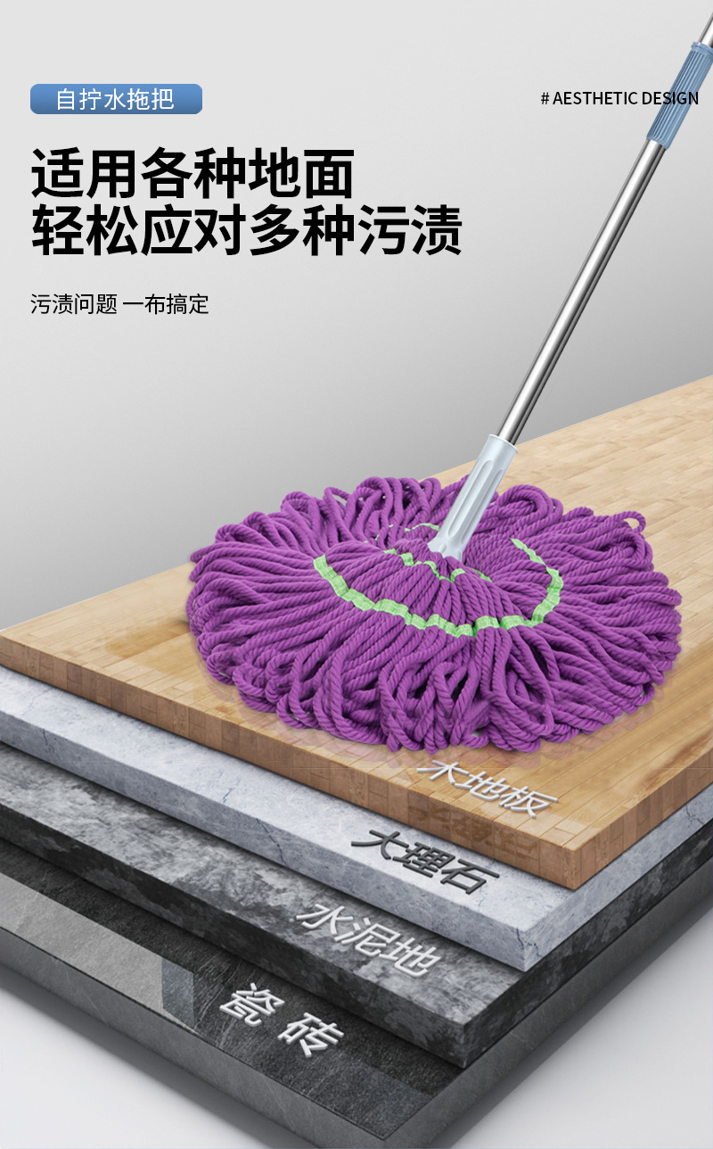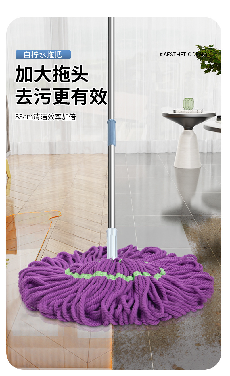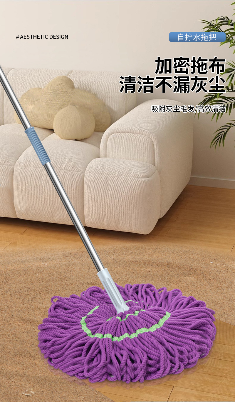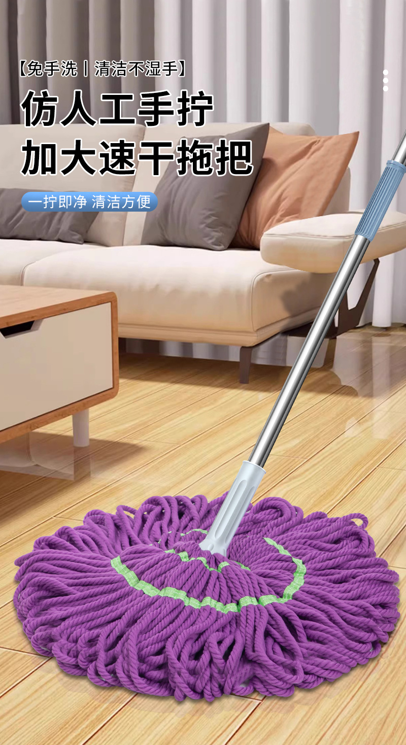 新款免手洗自拧水拖把家用毕卡索纤维强吸水拖地拖把拖布头供应链