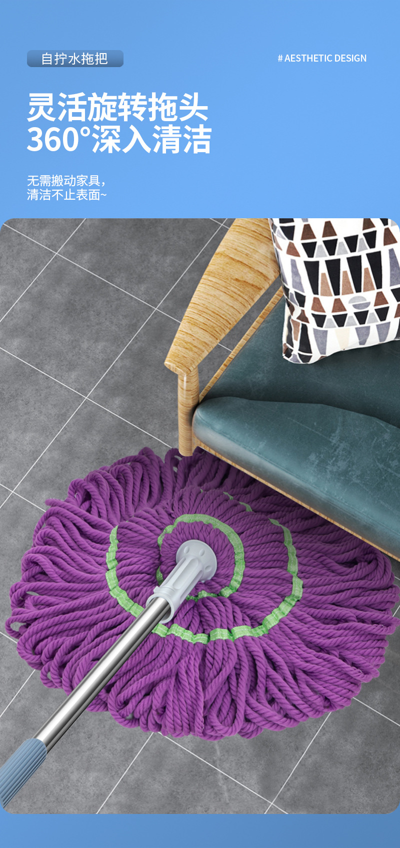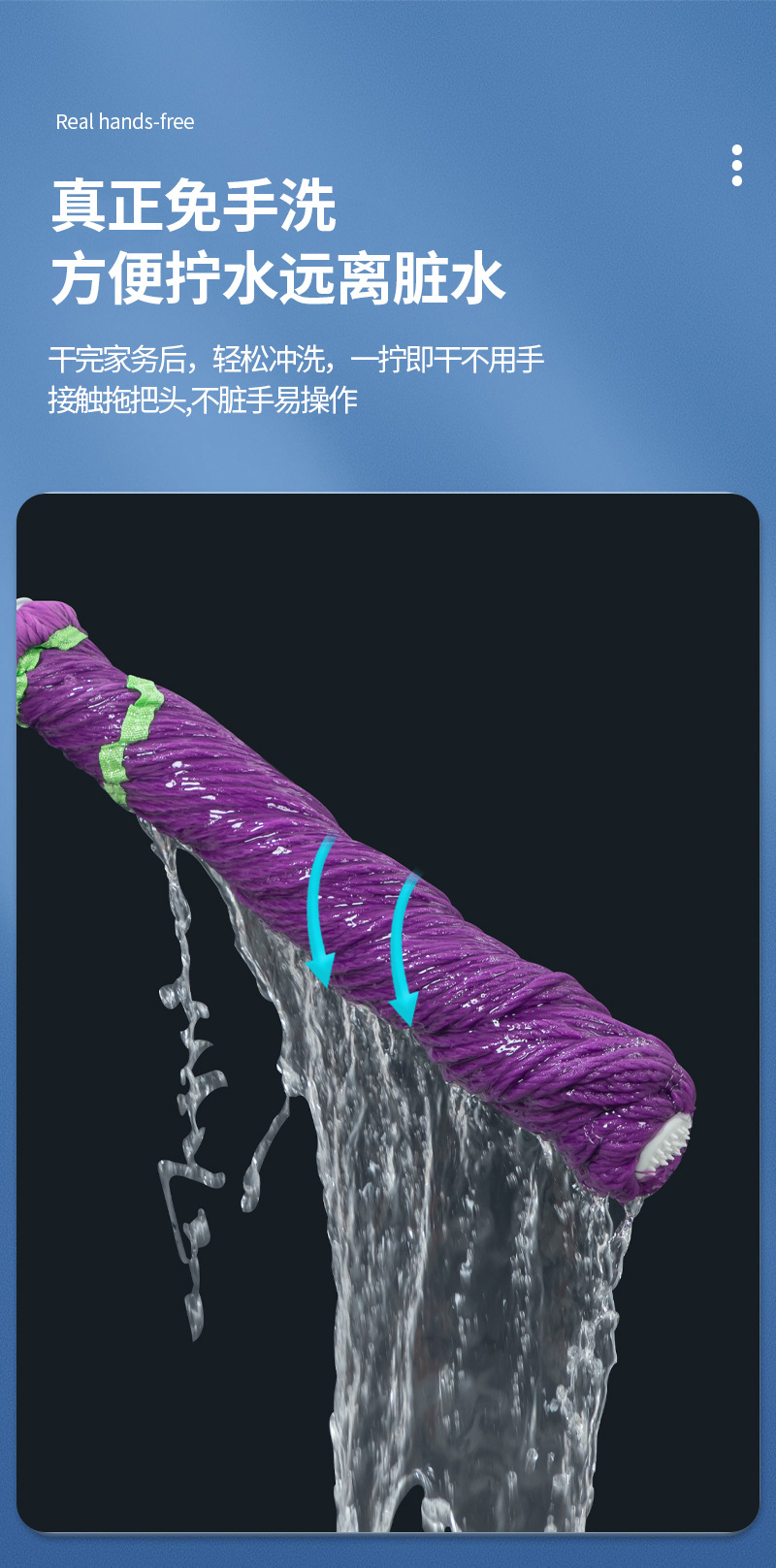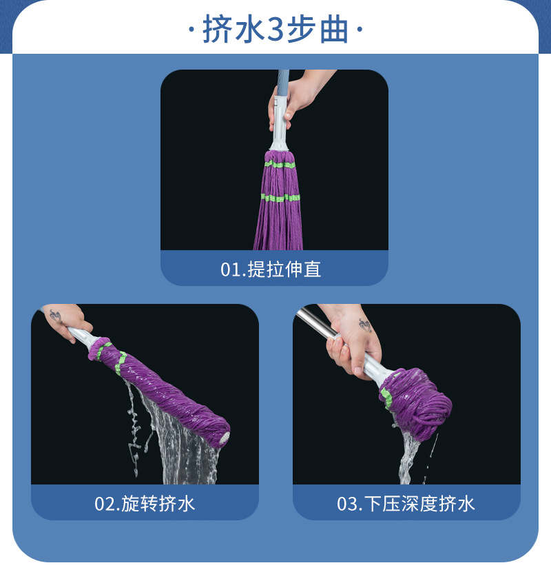 水をねじるモップは手を洗って回転させないで、ピカソの怠け者のモップを使います。