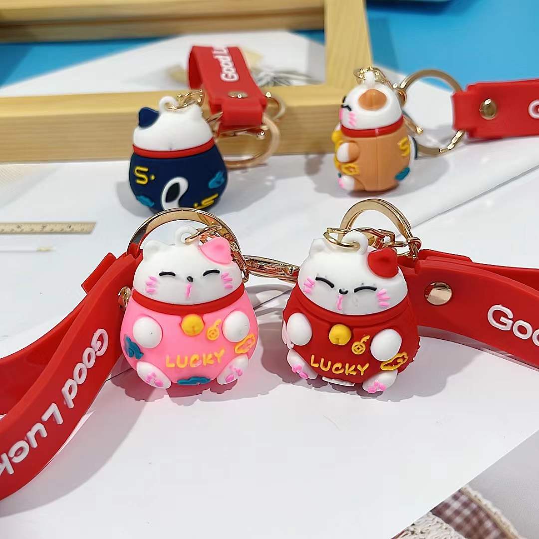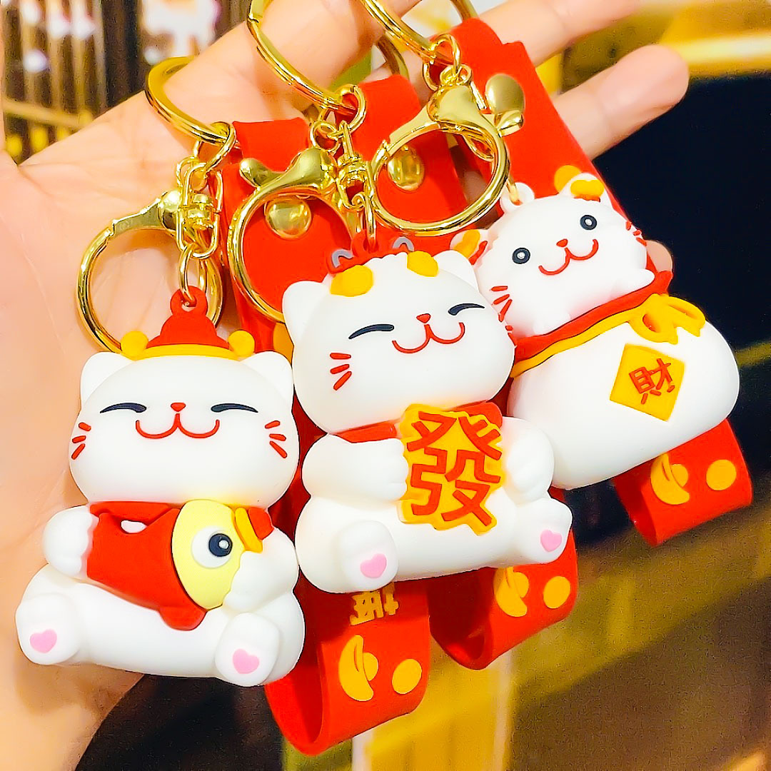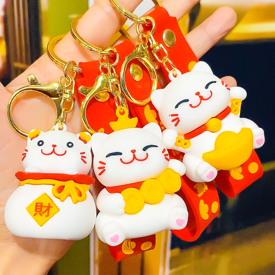 招き猫キーホルダー 立体漫画人形 カップルバッグ飾り 卸売キーチェーン 招き猫飾り