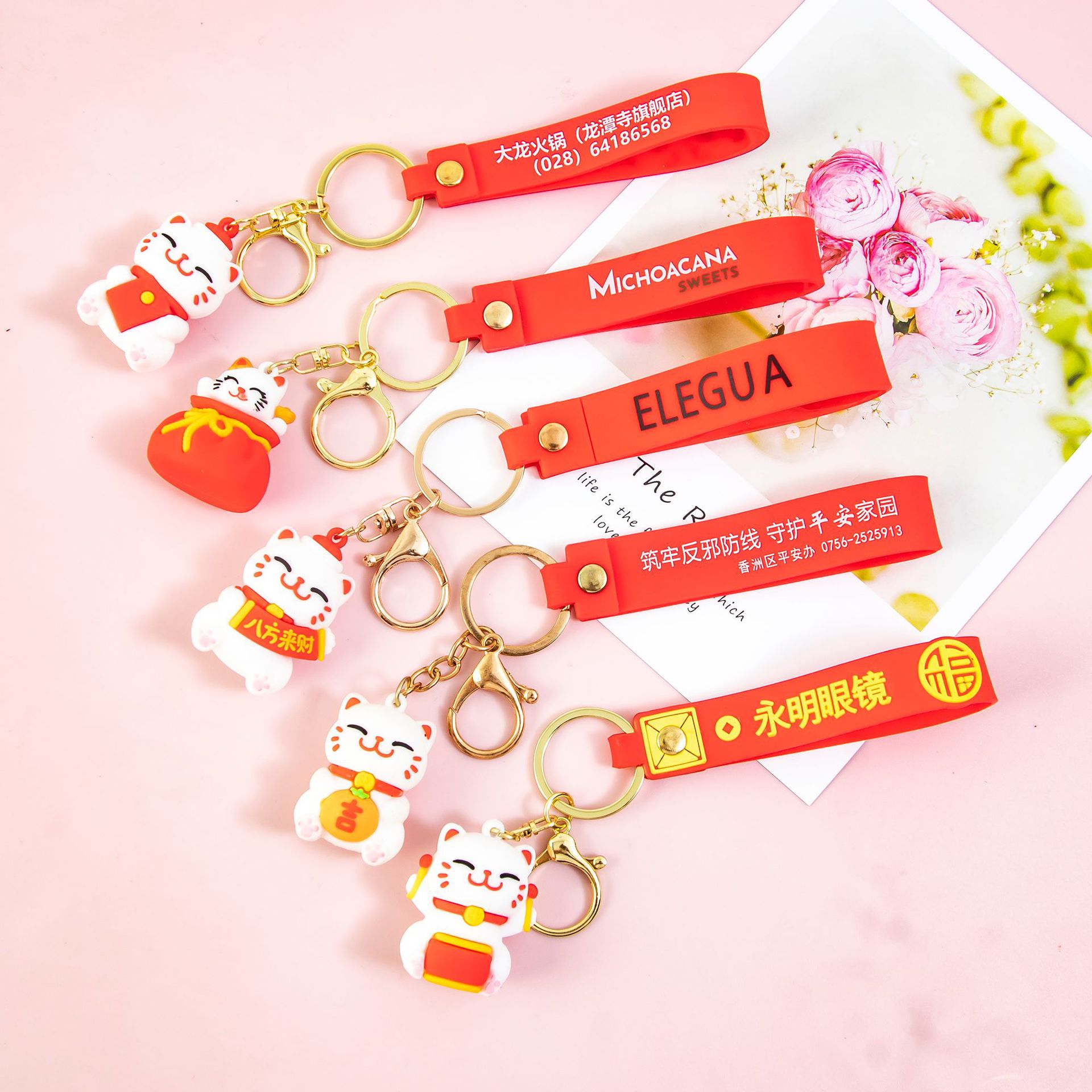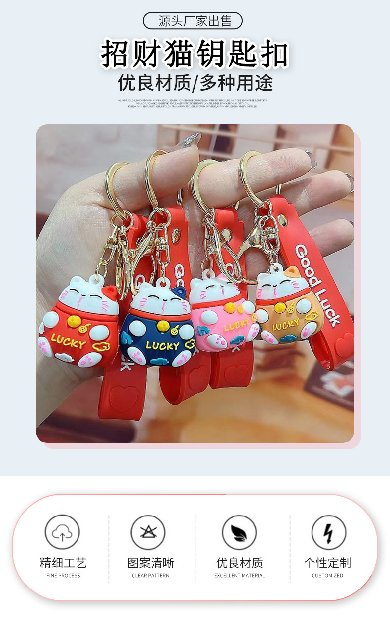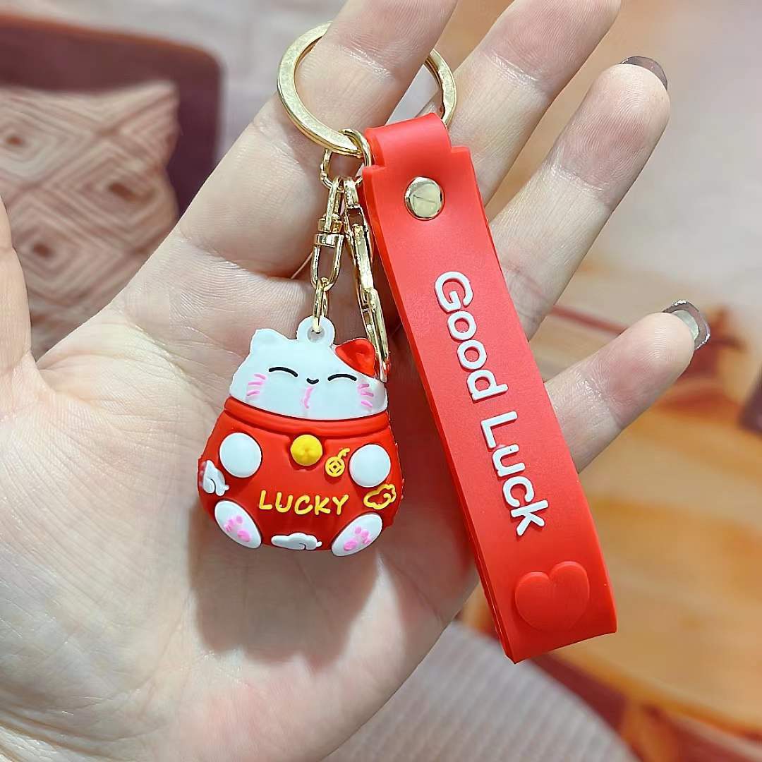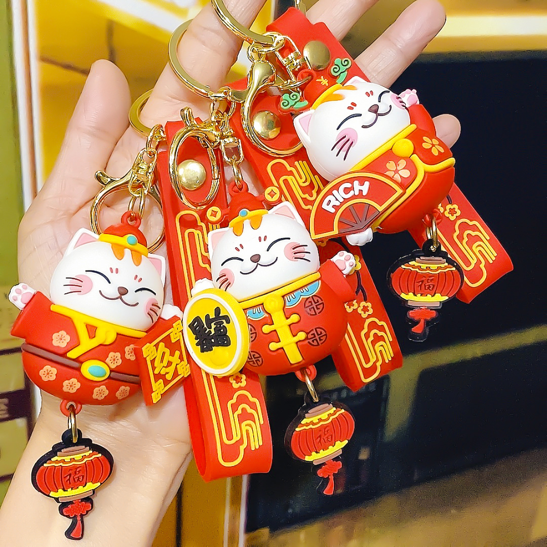 招き猫キーホルダー 立体漫画人形 カップルバッグ飾り 卸売キーチェーン 招き猫飾り
