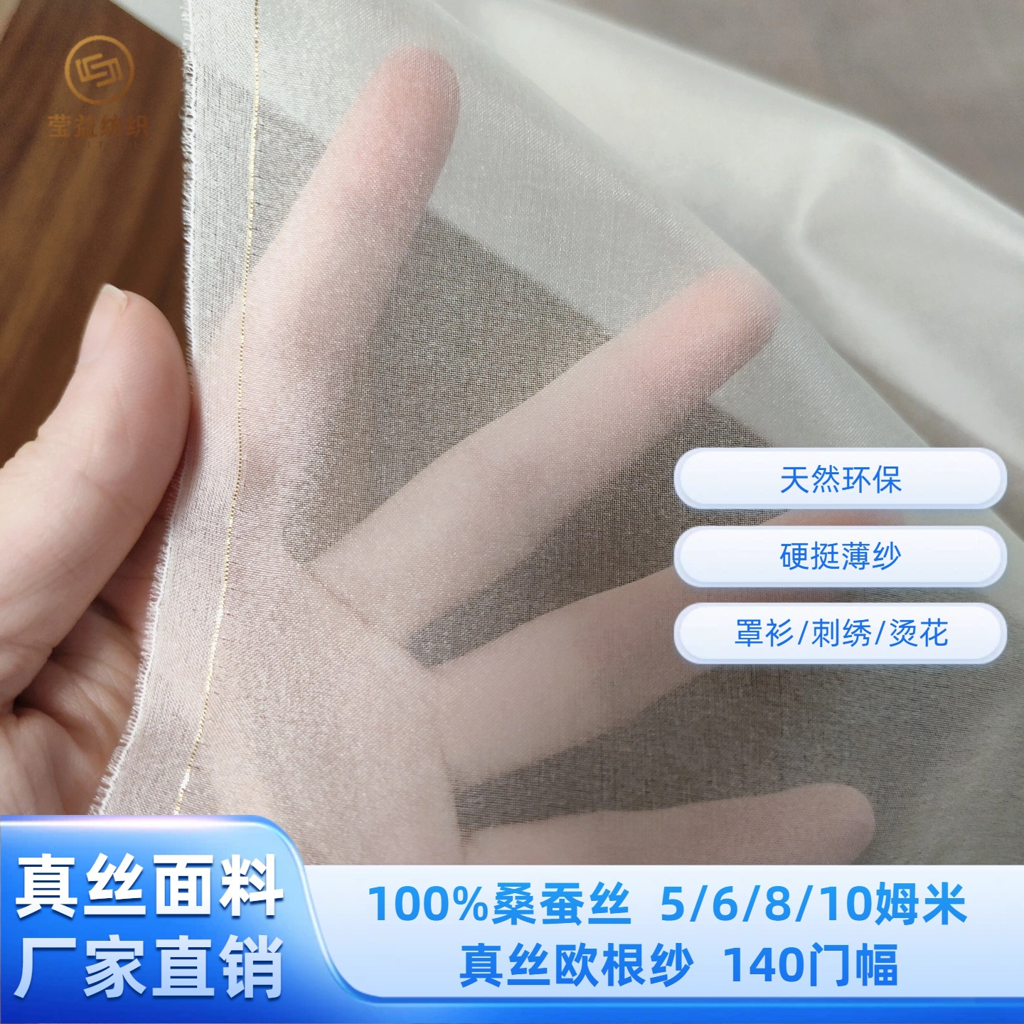 5/6/8/10MM真丝欧根纱硬挺薄纱真丝面料桑蚕丝布料烫花刺绣白布