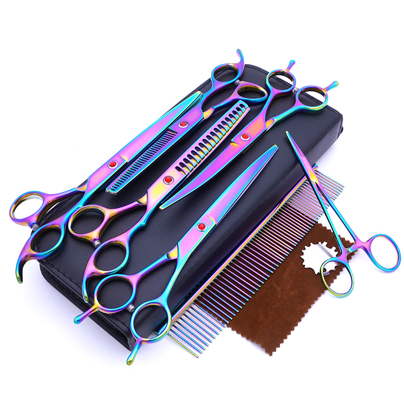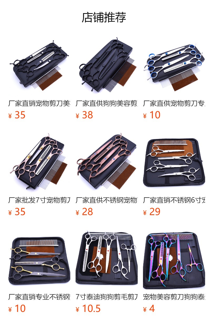 メーカー直供ペット美容ハサミセット平切上曲げ猫犬美容理髪ペットハサミ