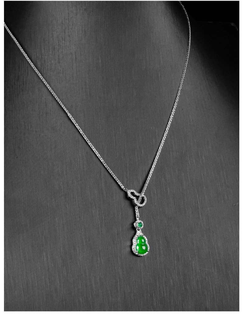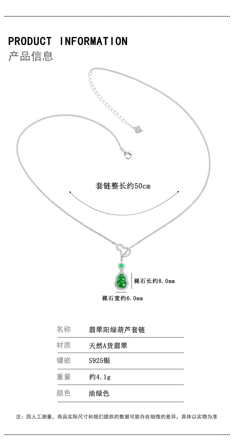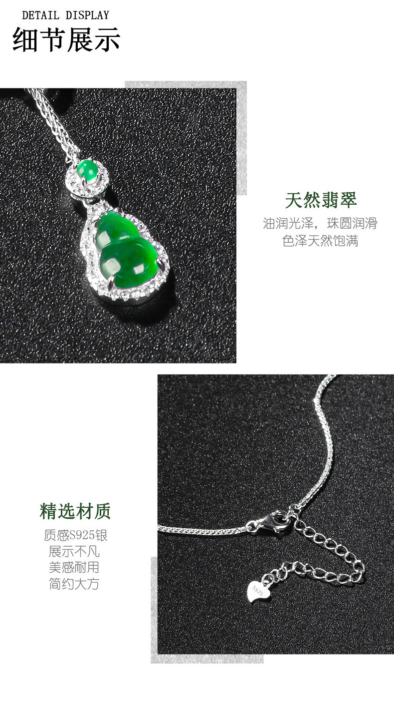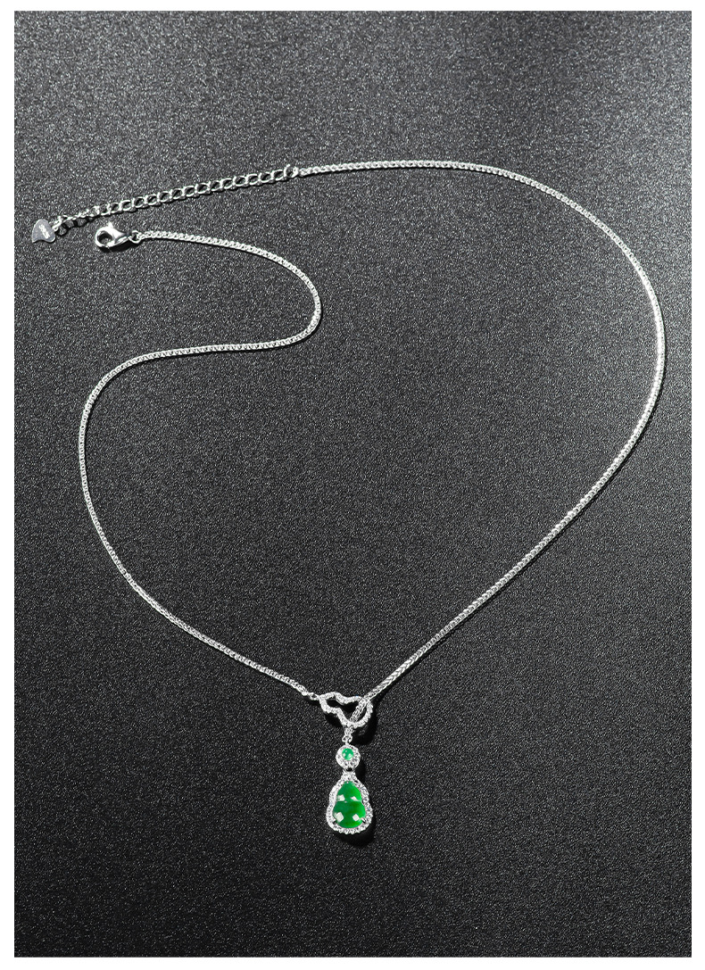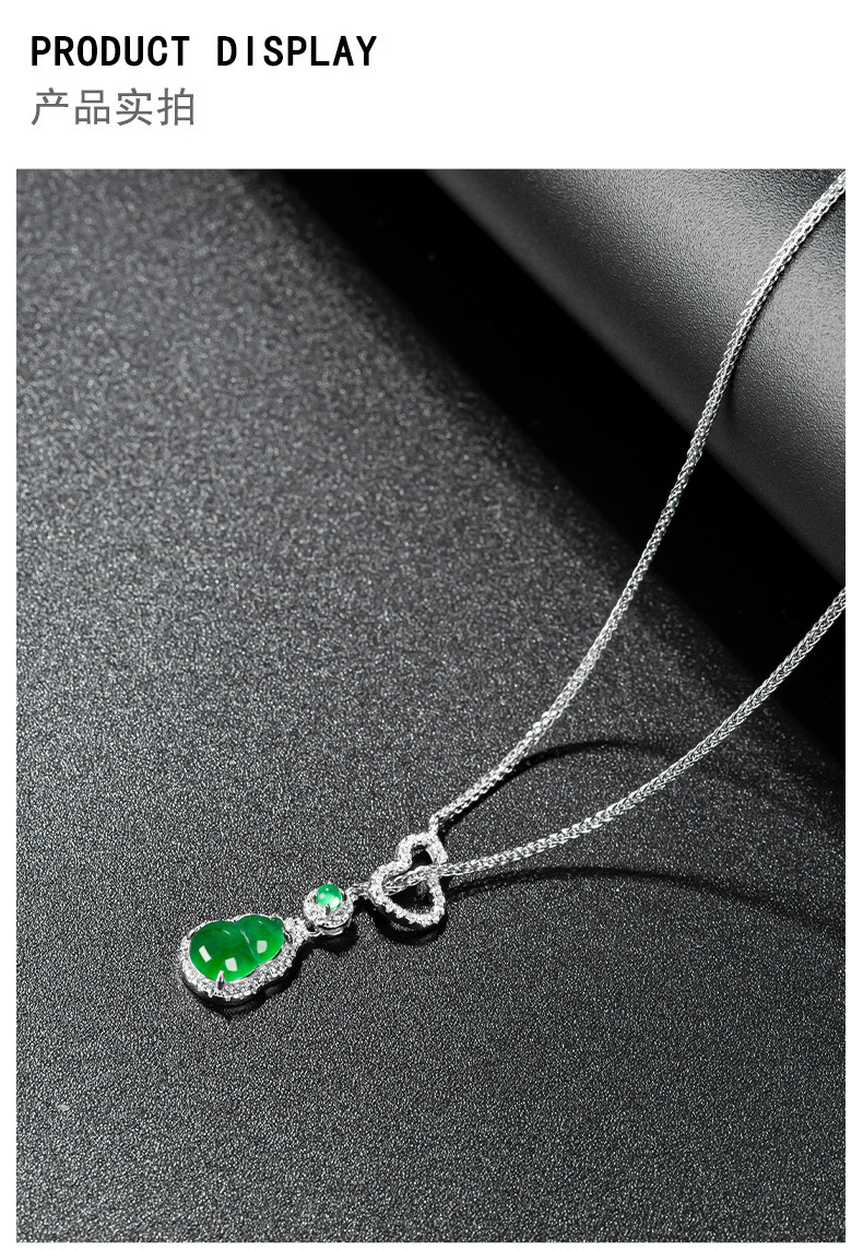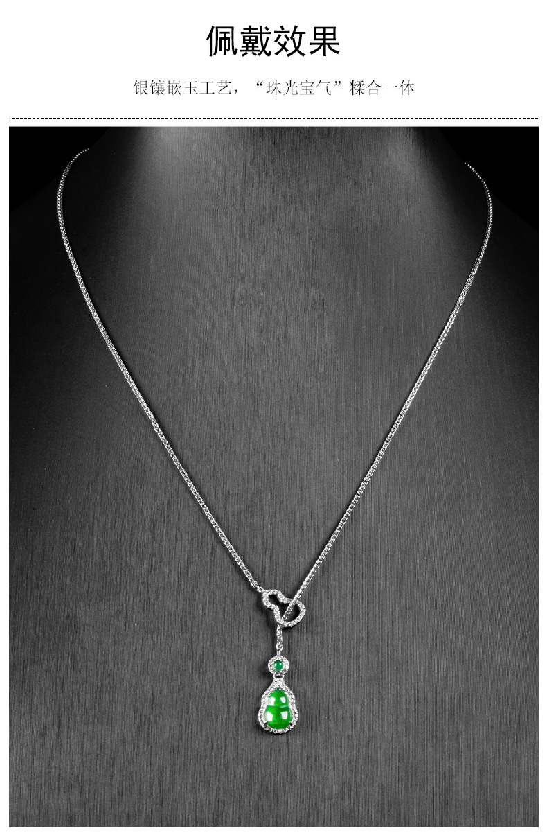 高級天然A品翡翠陽緑ひょうたんペンダントS925銀は氷種の玉をはめ込んでいます。