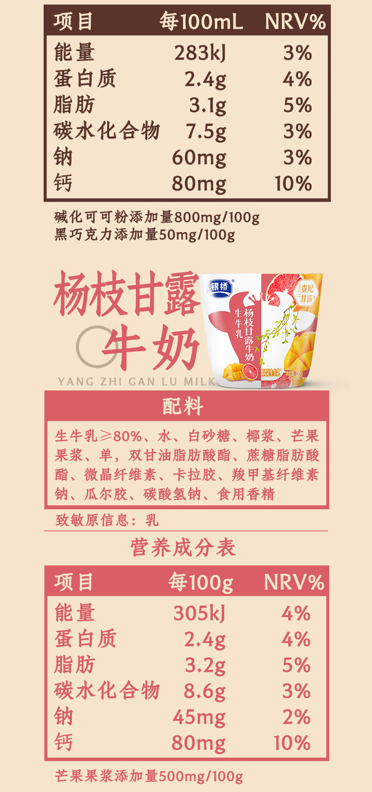 銀橋百利包シリーズの多種の味: イチゴ、ブドウ、オレンジ、白桃、純乳