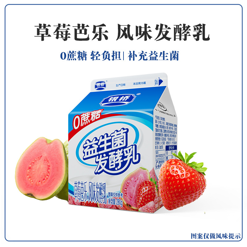 银桥益生菌发酵乳中屋草莓芭乐口味280g*6盒