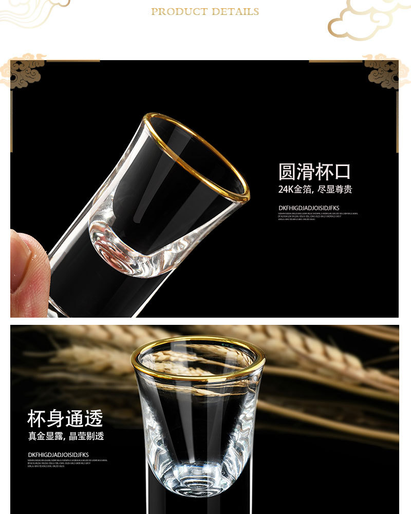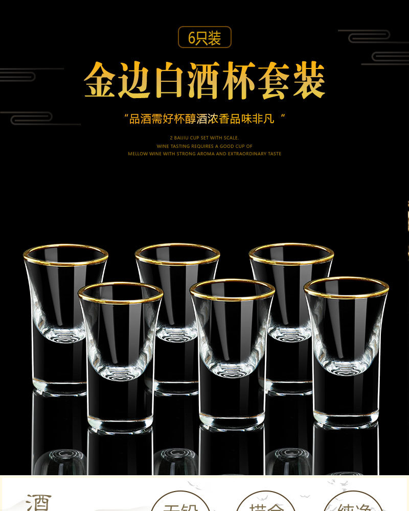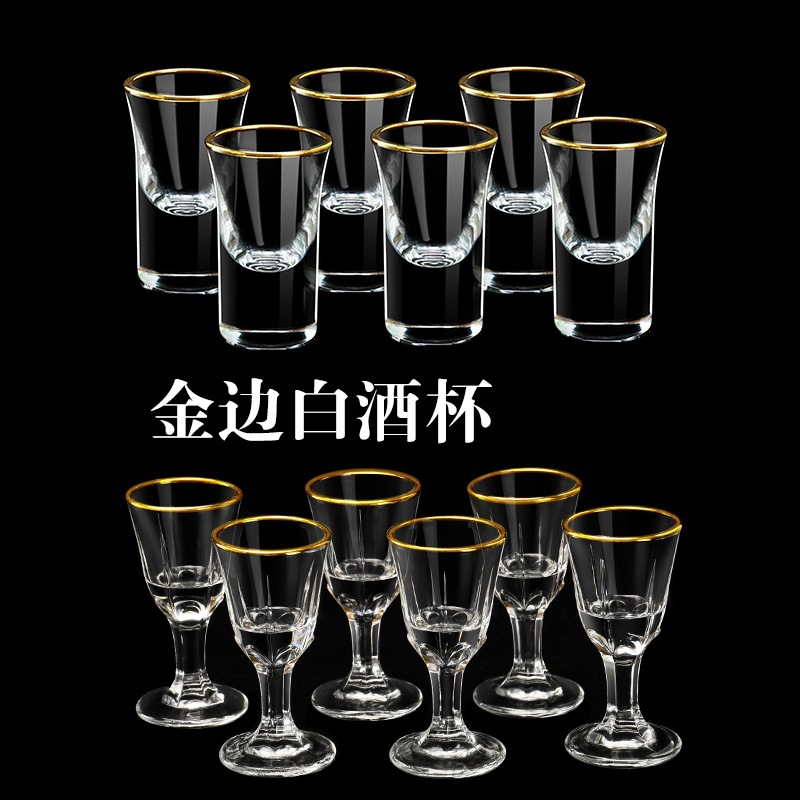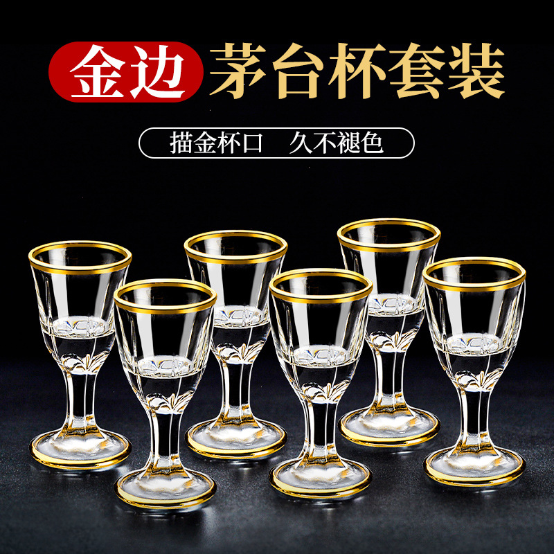 高級金辺ガラス白杯セット酒具ホテルレストランのトランペット高足杯茅台杯