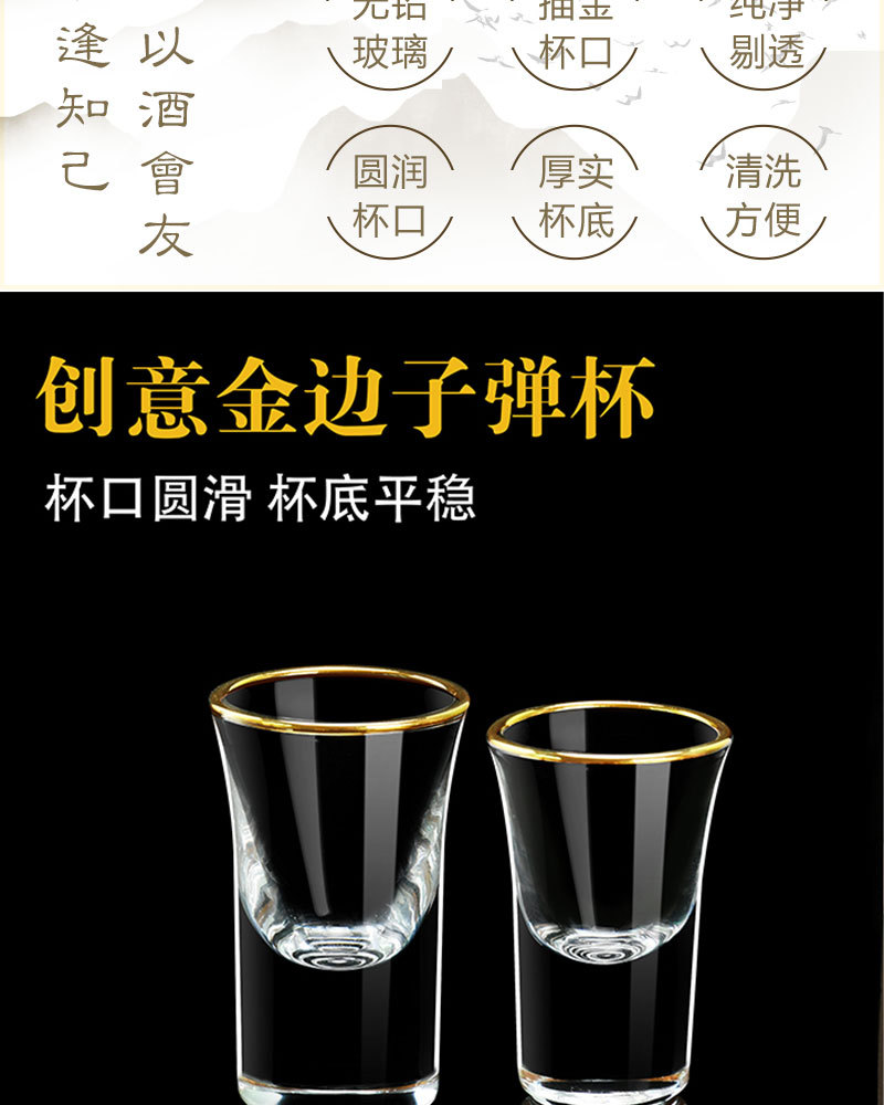 高档轻奢水晶玻璃白酒杯家用中式一口小酒杯子弹杯经典茅台杯酒具