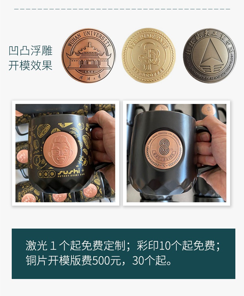 浮き彫り銅メダルカップコーヒーカップルカップ個性お土産刻印ロゴ陶磁器カップ高級カップ