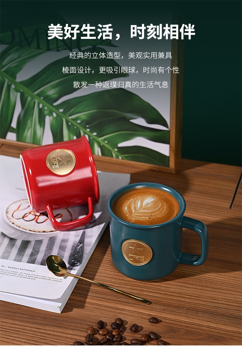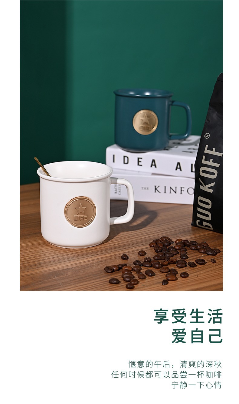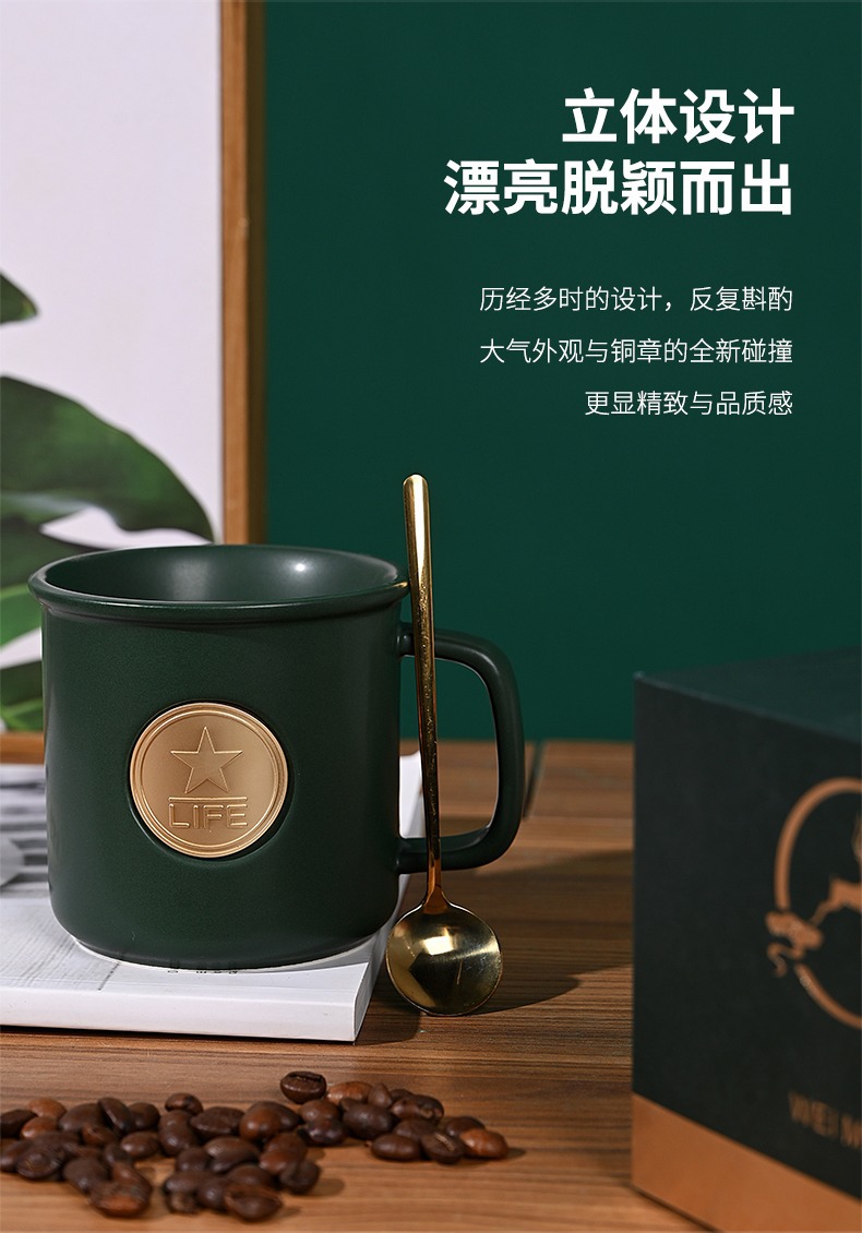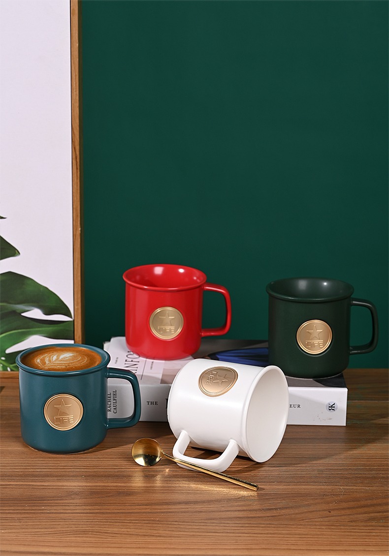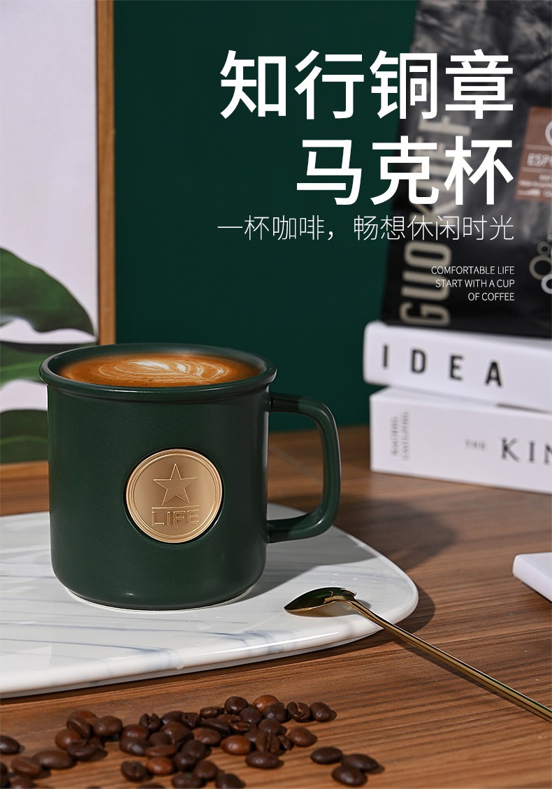 星巴風陶磁器銅メダルマグカップオフィスコーヒーカップテーブルカップ陶磁器コップ広告プレゼントマーク