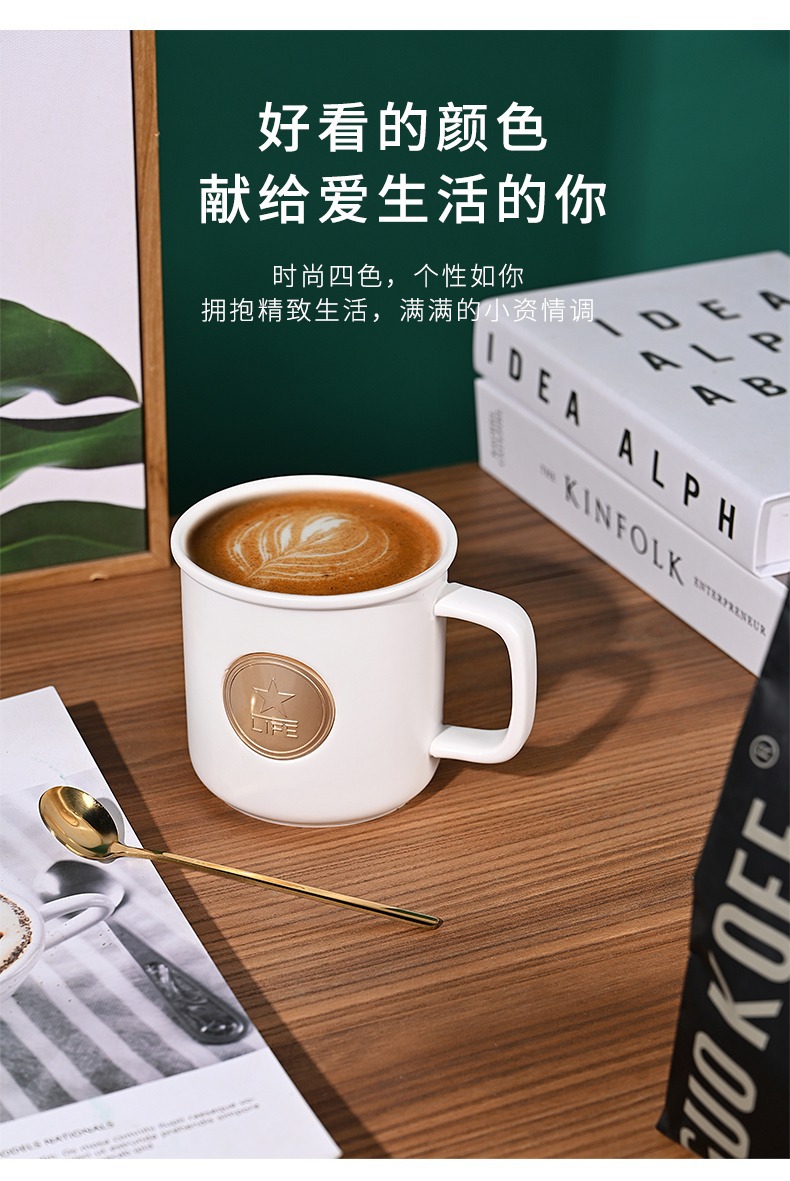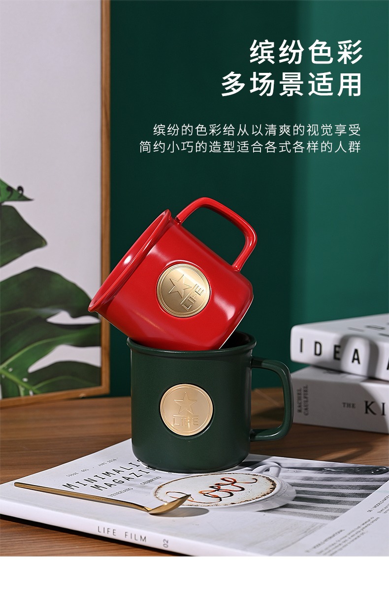 マグカップ陶磁器カップコーヒーカップ色釉薬レトロ模造エナメルカップ水カップロゴプレゼントシンプルマグカップ