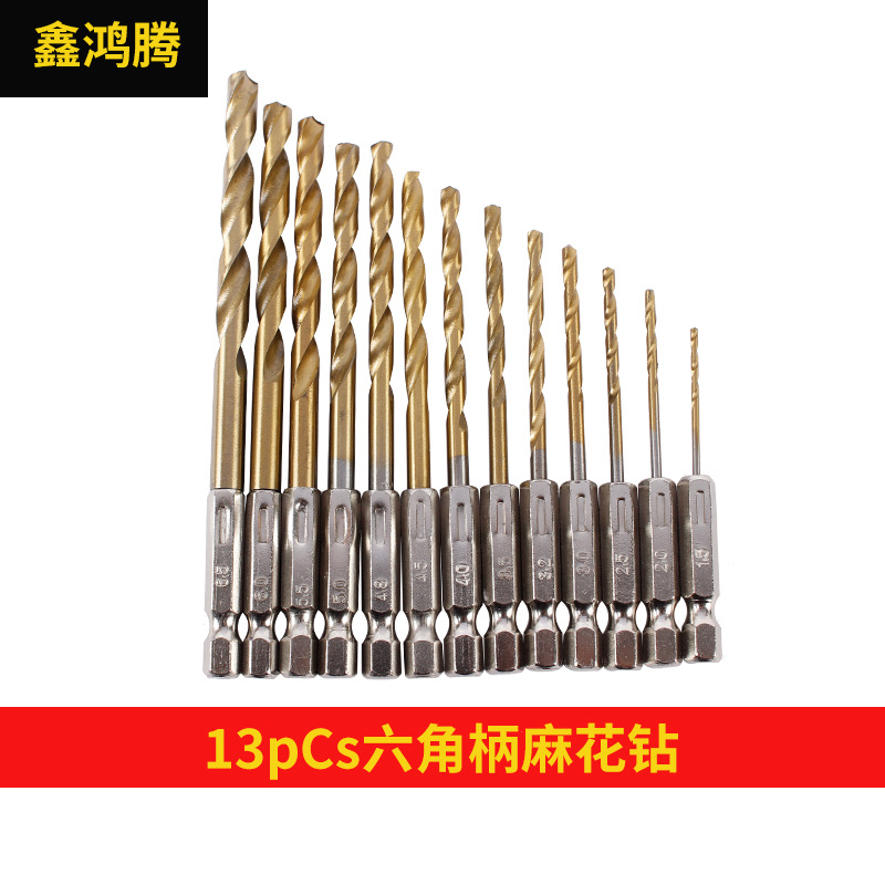 13本入り六角軸ツイストドリルビット1.5-6.5mm高速鋼窒化チタンコーティング風動工具