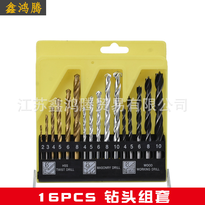 16点セットドリル混合セット16pcs大工ドリル麻花ドリル建工ドリルプラスチックケースセット懐中電灯ドリル