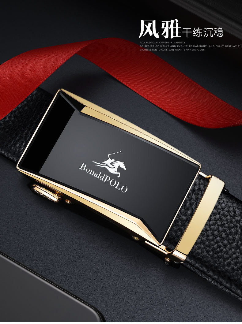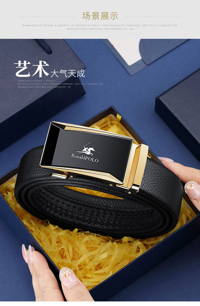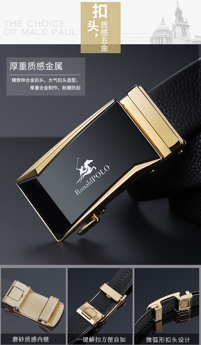 RONALDPOLOベルト男性本革自動バックル純牛革男性ベルトビジネスシンプルなズボンベルトプレゼント卸売り