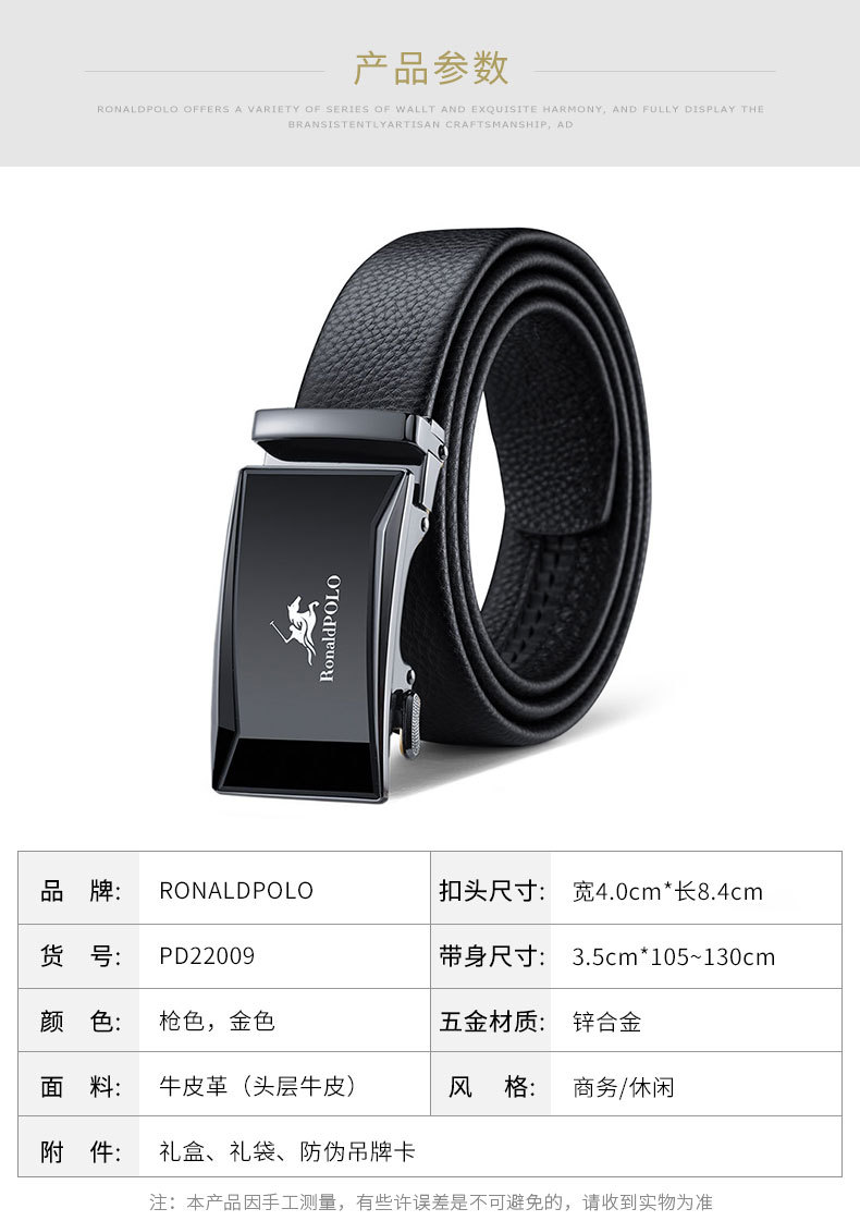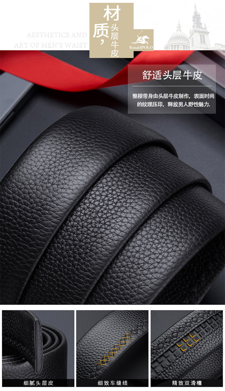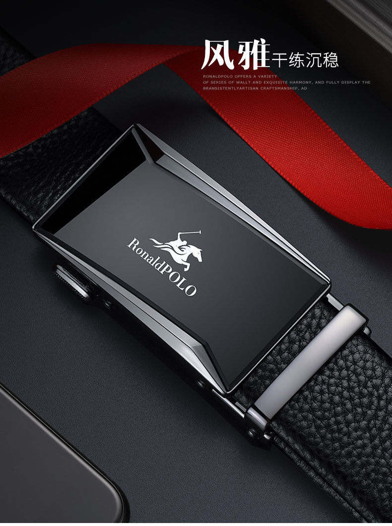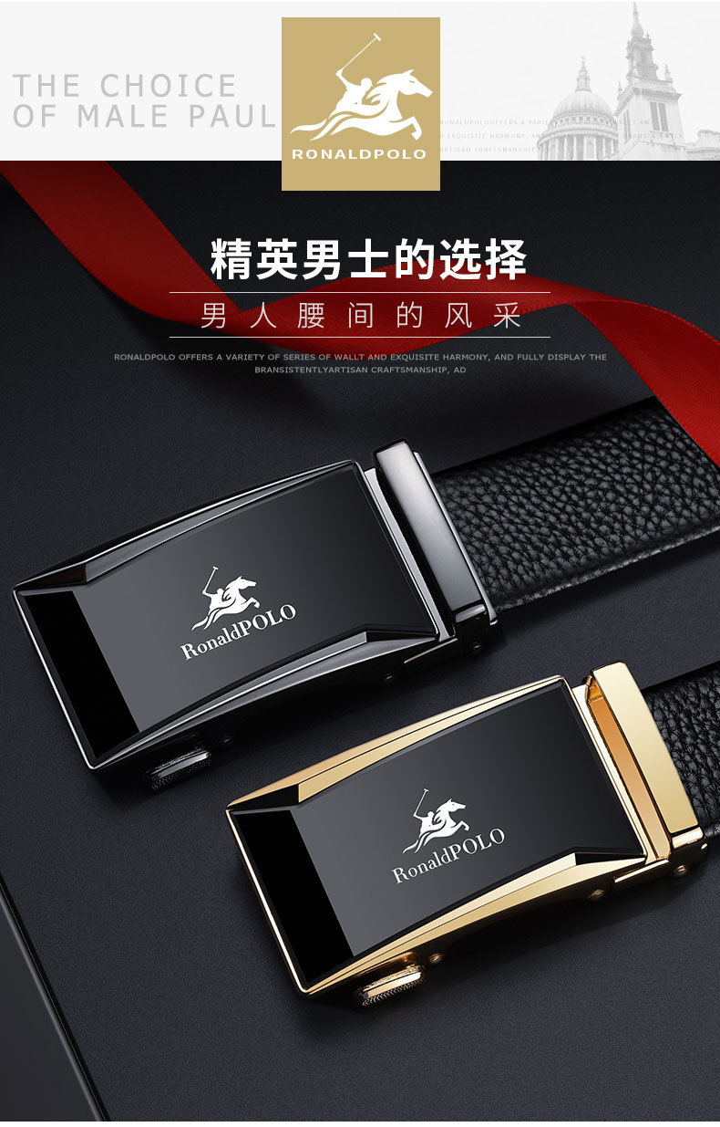 RONALDPOLOベルト男性本革自動バックル純牛革男性ベルトビジネスシンプルなズボンベルトプレゼント卸売り