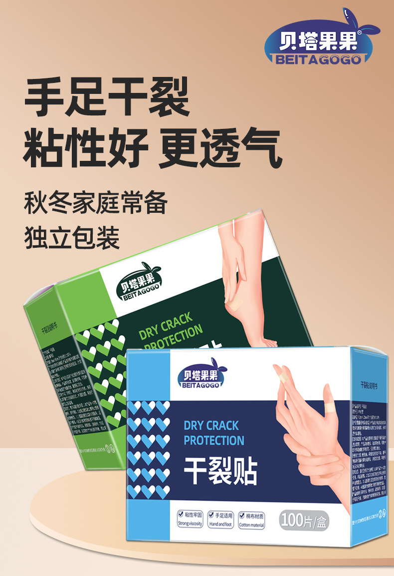 医療用のひび割れ防止ゴムクリームの指のひび割れ防止医療用テープのかかとがひび割れています。