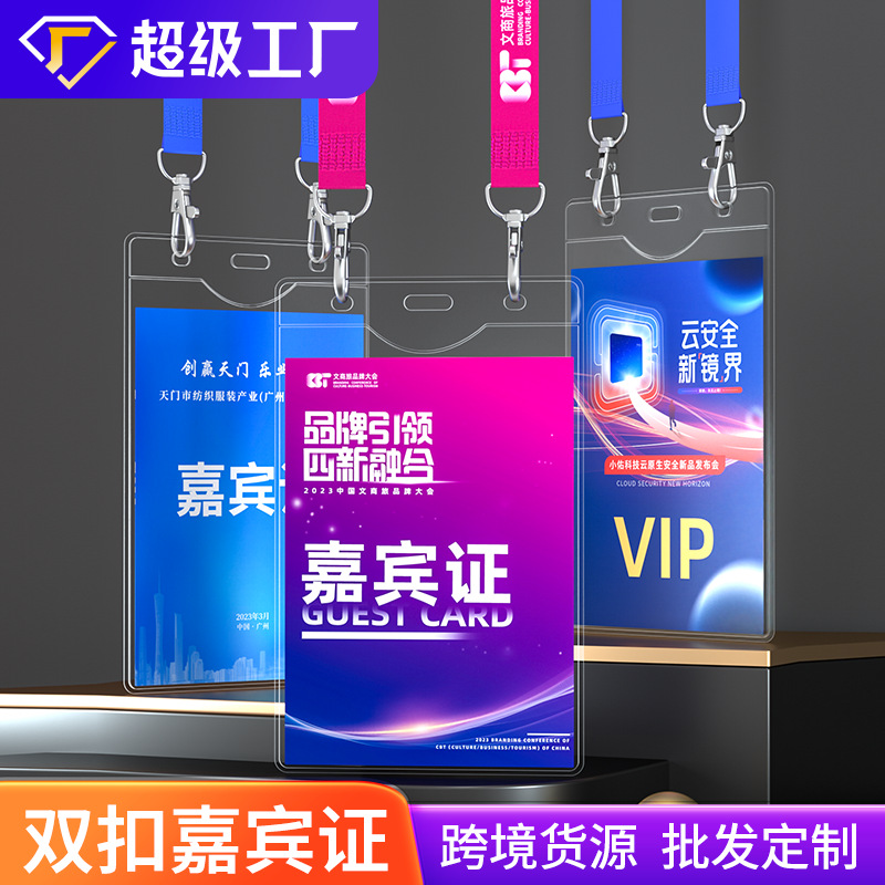 大サイズb7透明参加証ソフトカードセット嘉賓証胸牌参会証参加証作業証ダブルボタン掛け縄シェル