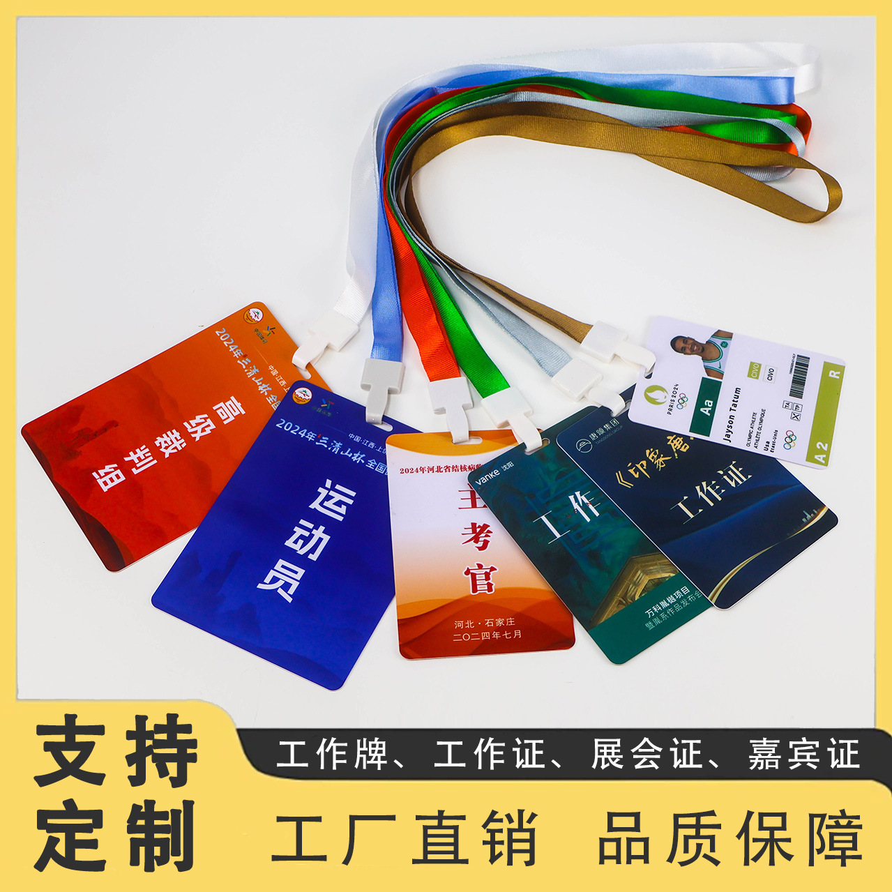 作業証明書のストラップを注文して出展します。