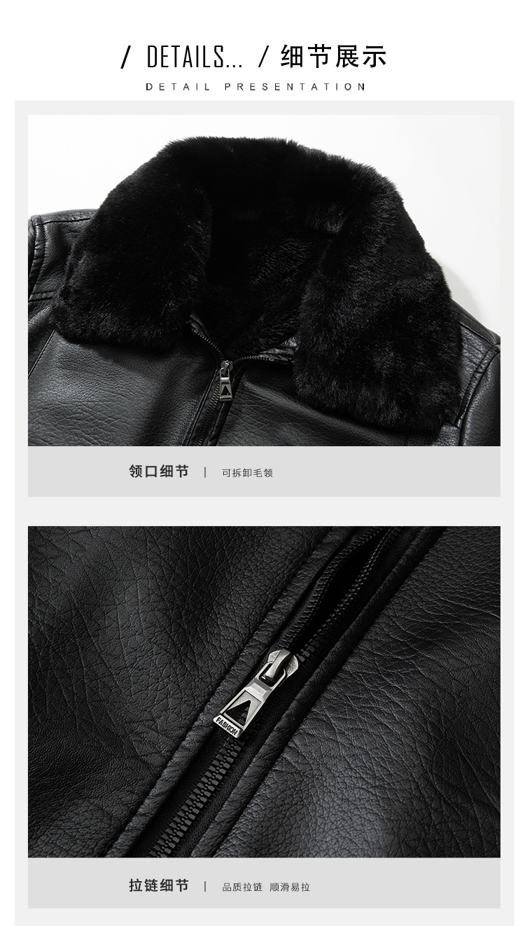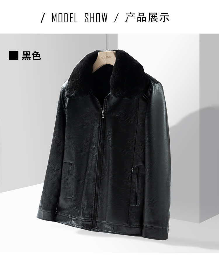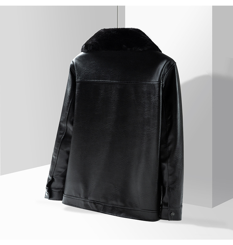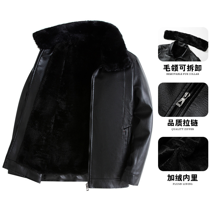 ファー襟レザージャケットメンズ冬中高年ジャケットプラスベルベット肥厚オートバイPUレザージャケット暖かい中年お父さん着用