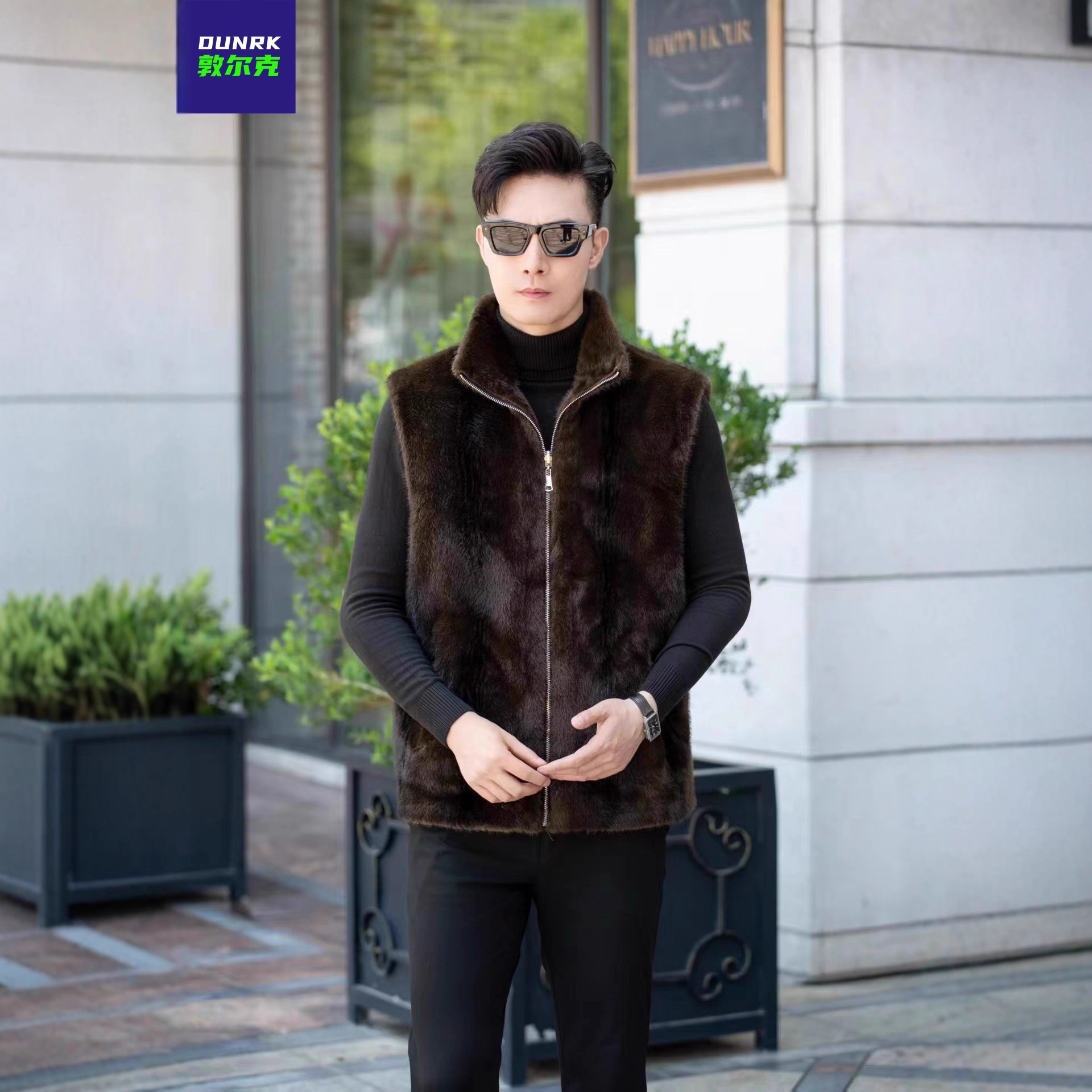 新款皮毛一体男士麂皮马甲双面穿高端复古保暖貂绒坎肩马夹外贸