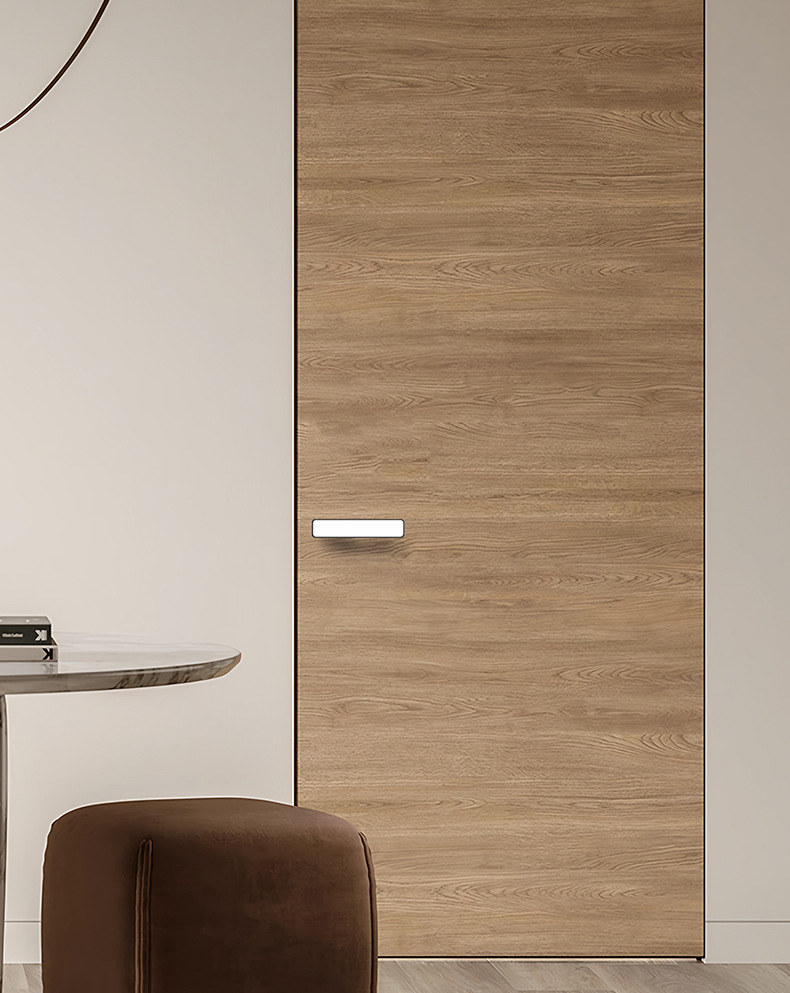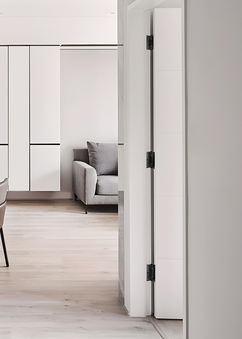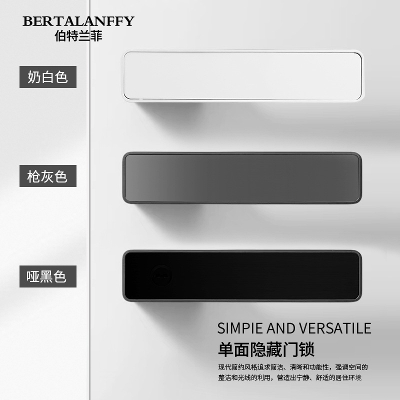 片面隠しドアロック イタリア風ミニマリスト ブラック隠しドア 片側ロック 白背景壁 寝室隠しドアロック