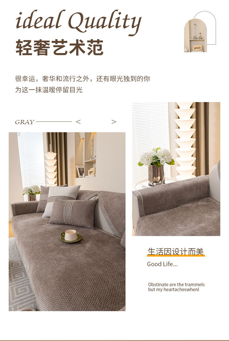 福鹿四季通用2026秋冬高級軽量ラグジュアリー万能シェニール滑り止めソファクッションフルカバーソファカバー