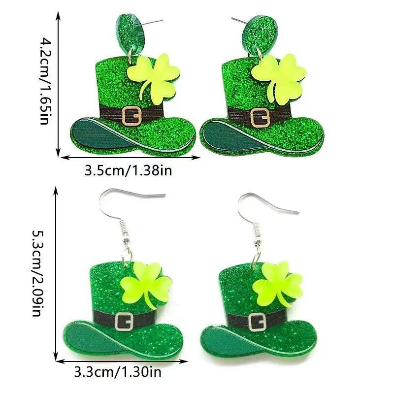 爱尔兰圣帕特里克节镜面三叶草满粉耳钉狂欢节派对亚克力耳环配饰