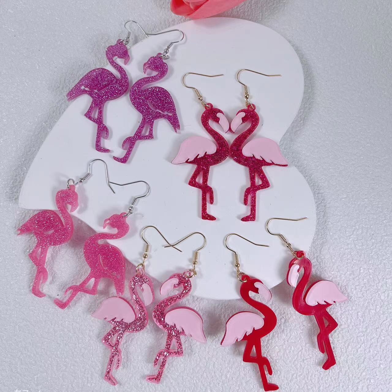 国境を越えたアマゾンイヤリングキラキラピンクバレンタインデー趣味かわいいフラミンゴイヤリング卸売り