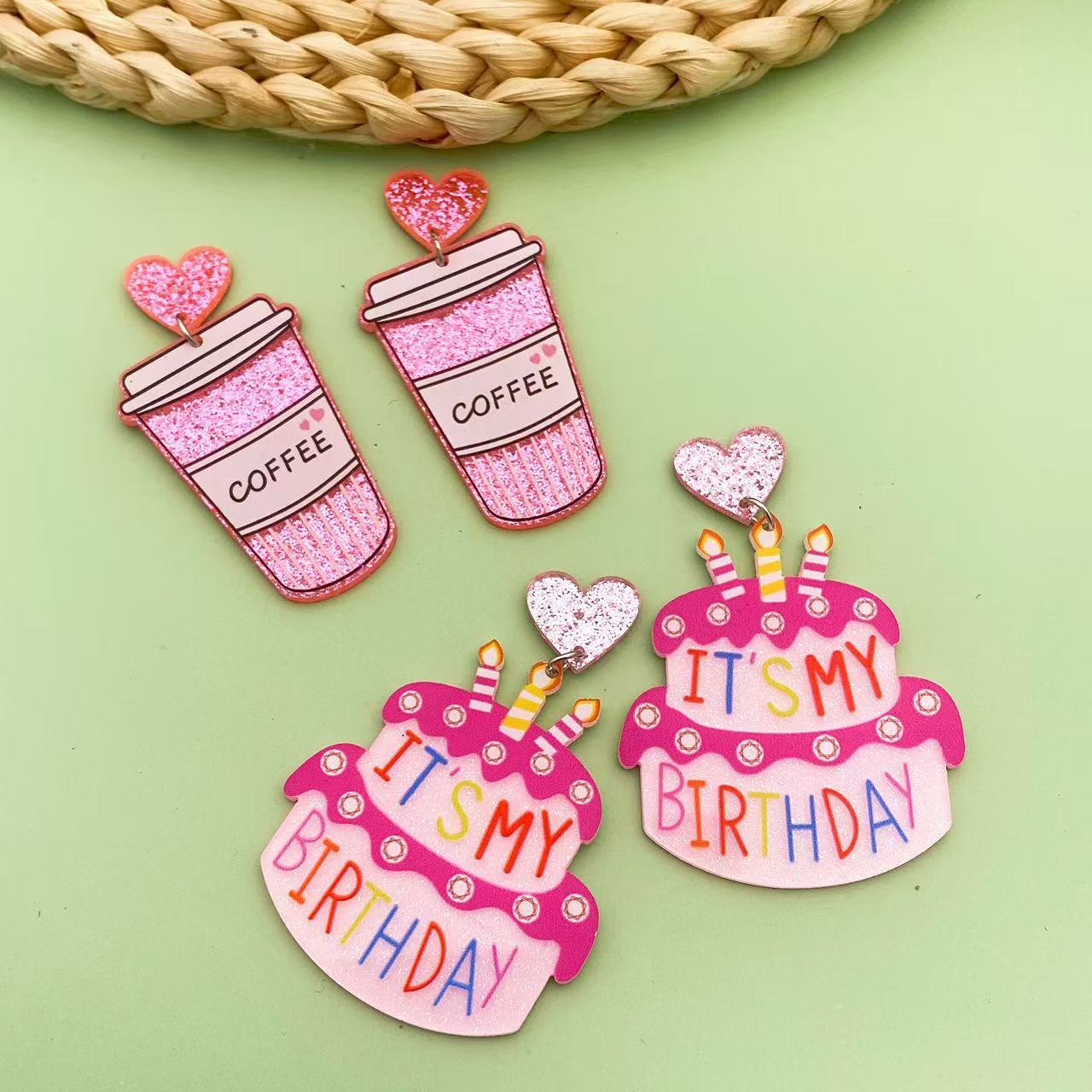 欧米のクリエイティブな雰囲気パーティーhappy birthdayバースデーケーキコーヒーカップイヤリング祭り記念イヤリング