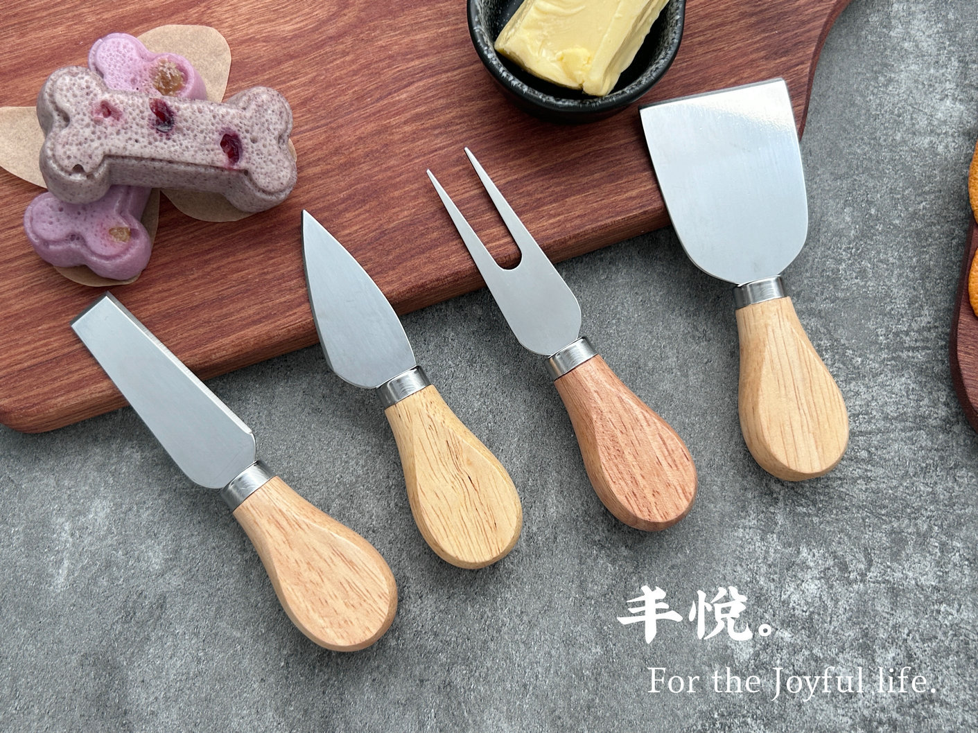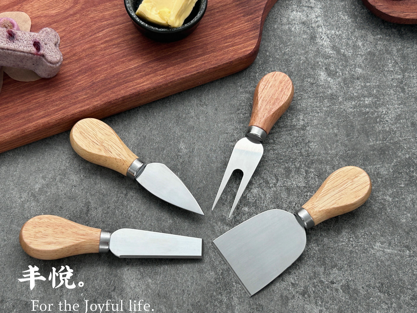 工場スポットゴム木柄ステンレスチーズナイフキッチンベーキングチーズバターナイフ国境を越えたチーズツール