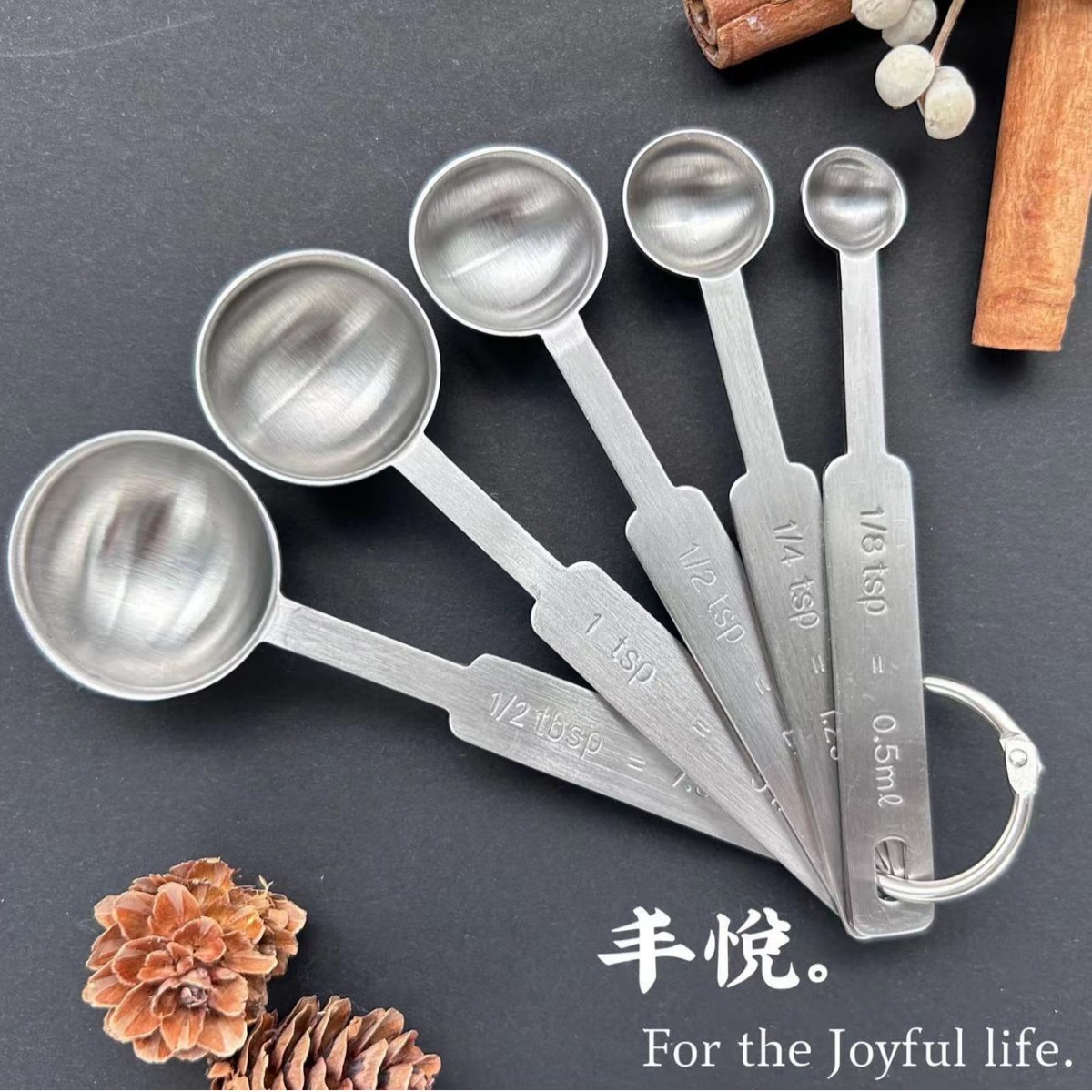 ステンレス計量スプーン5点セットコーヒースプーン粉ミルクスプーン目盛り計量スプーン長柄スプーン創意スプーンメーカー卸売り