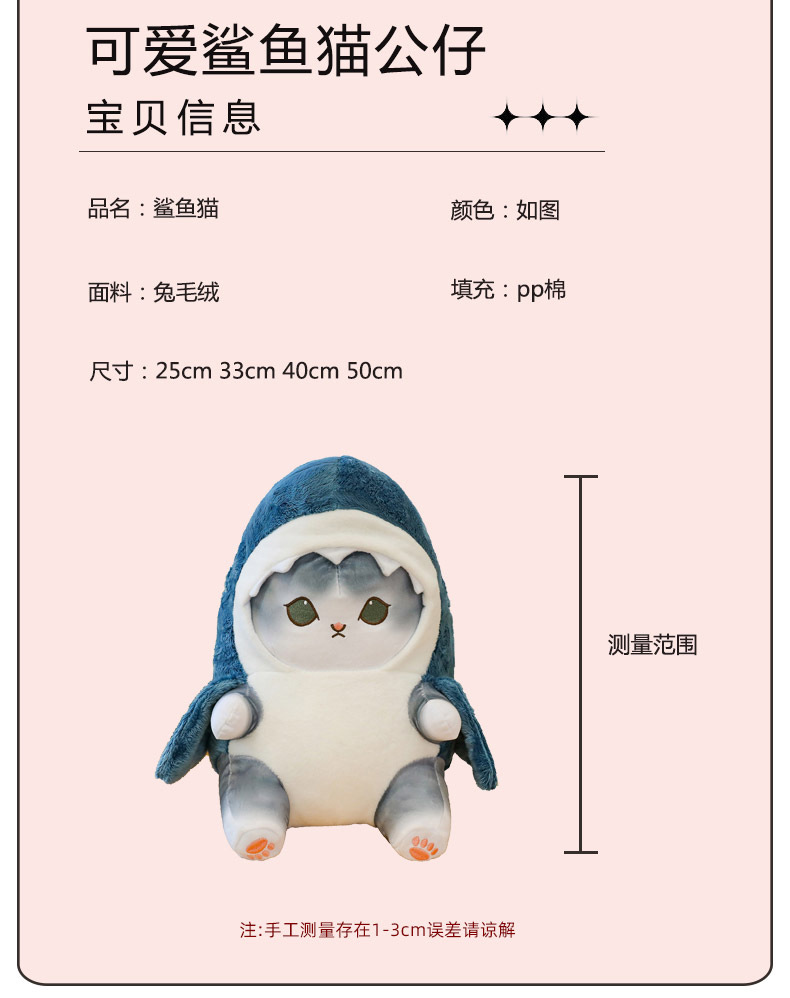 クロスボーダー爆型アニメサメ猫変身ぬいぐるみ猫人形誕生日プレゼントサメ猫人形