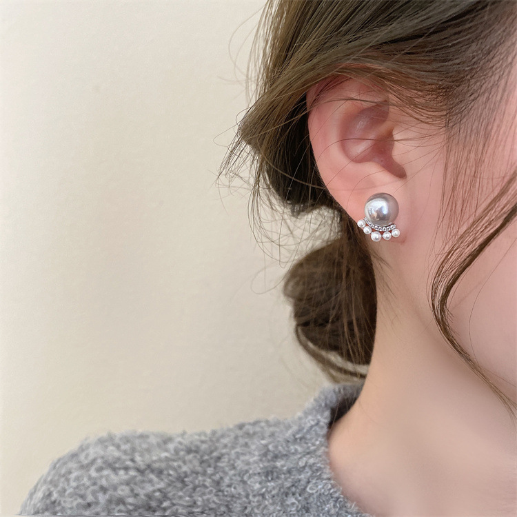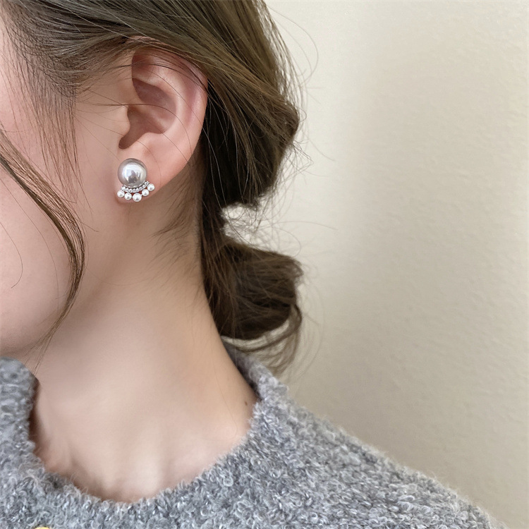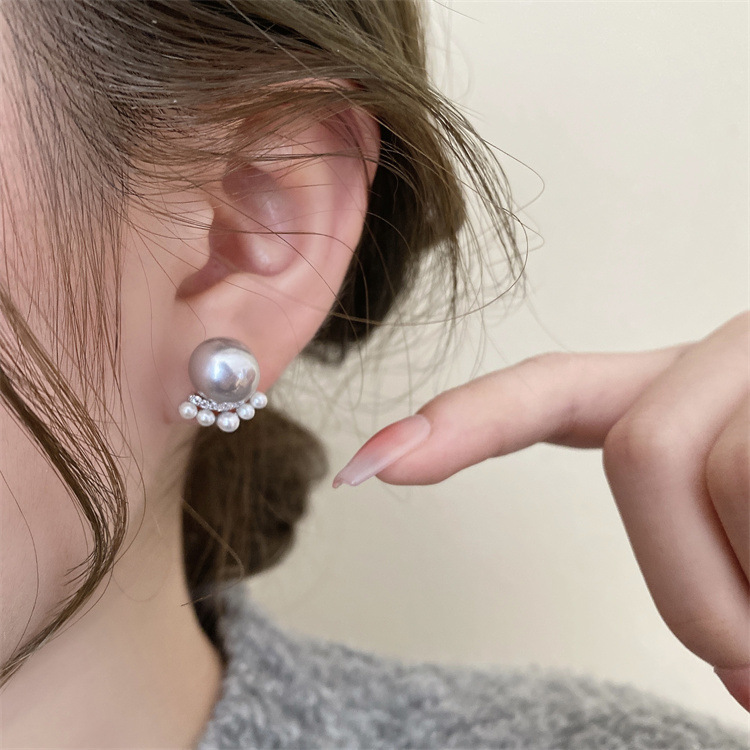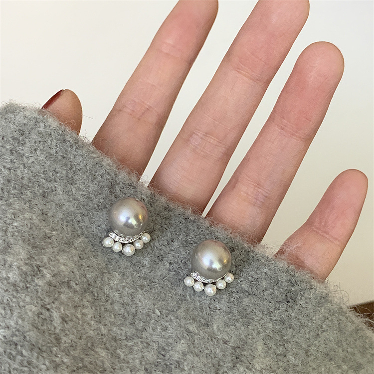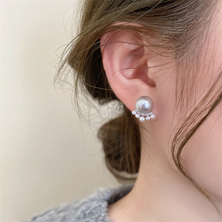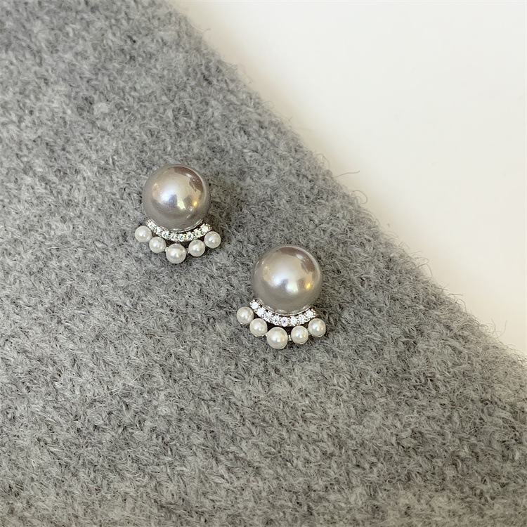 シンプルな灰色の真珠はジルコンのピアスをはめ込んでいます。